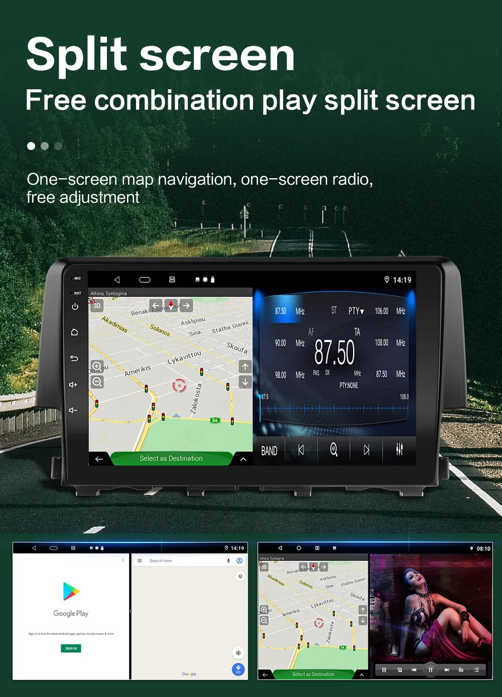 Автомобильный мультимедийный плеер, 6 ГБ + 128 Гб, 2 din, Android 10, для Honda CIVIC 2016, 2017, 2018, автомобильный видеоплеер, радио, GPS-навигация, RDS, DSP, IPS