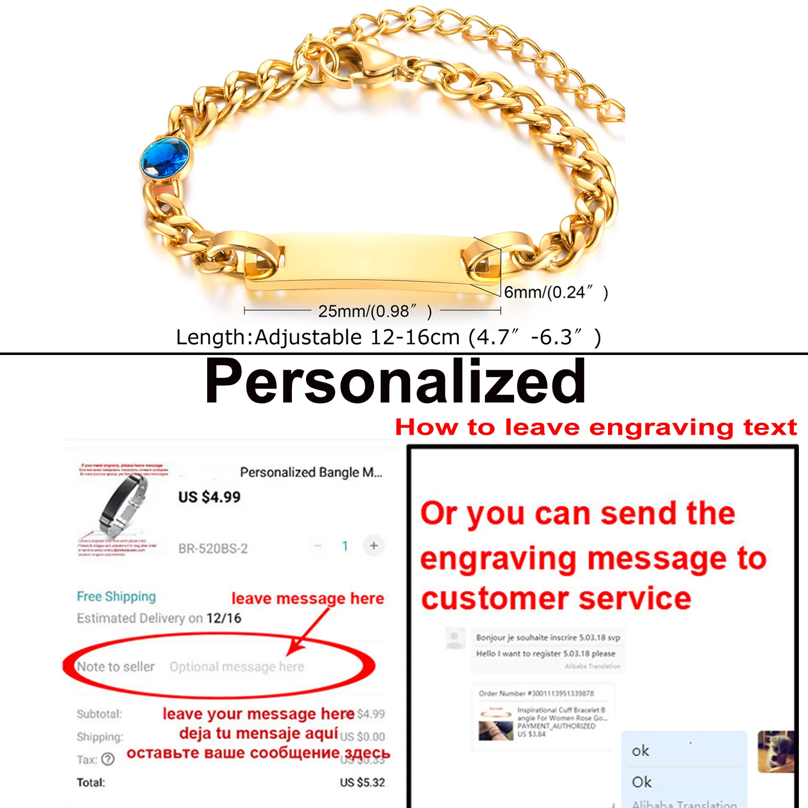 Гравировка Персонализированные ID ребенка браслет с камнем рождения, настраиваемый имя Снаряженная Цепь, новорожденный мальчик девочка подарок на день рождения
