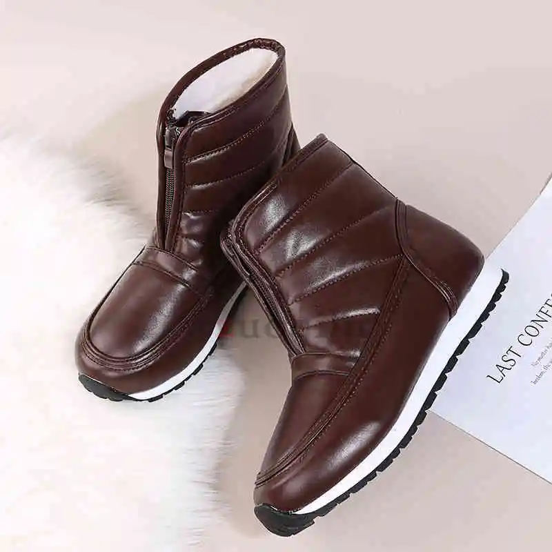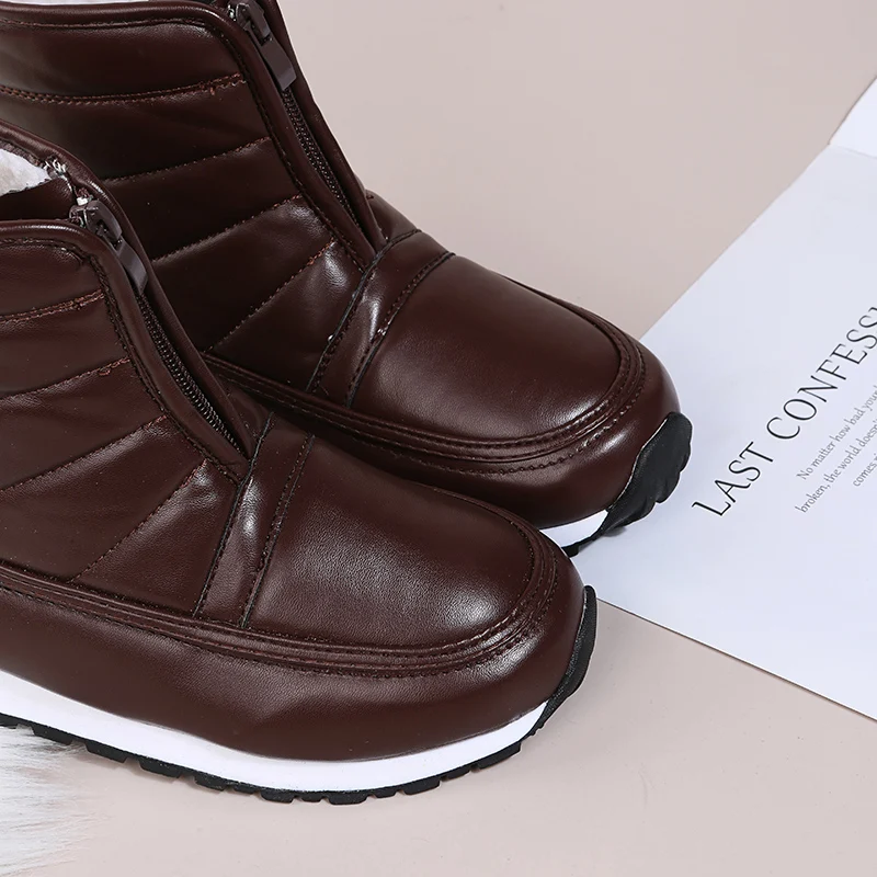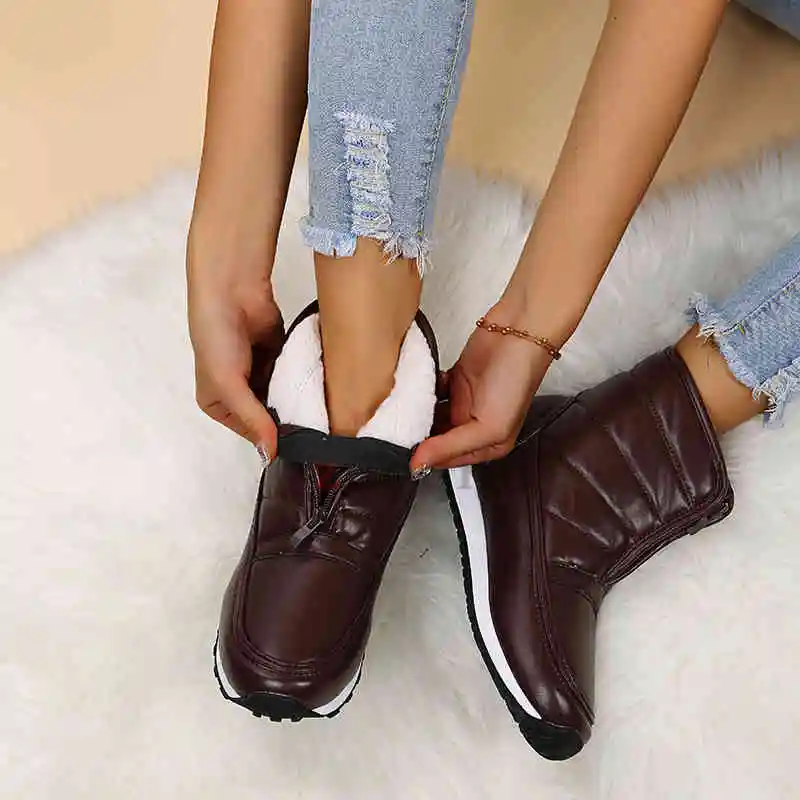Женские ботильоны из искусственной кожи, зимние ботинки с круглым носком, женская зимняя обувь, Теплые повседневные кроссовки на низком каблуке, водонепроницаемые женские ботинки, большой размер 42