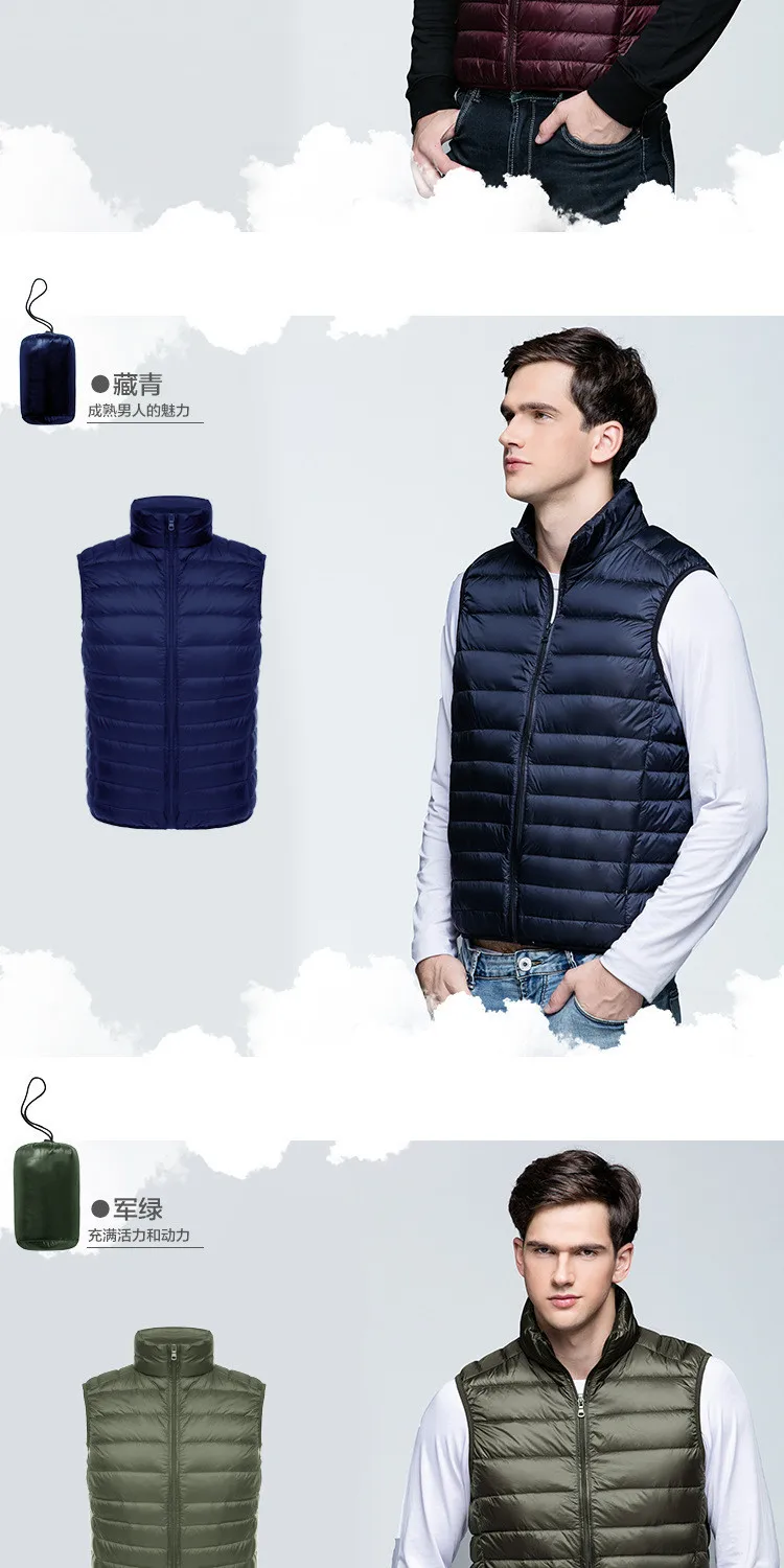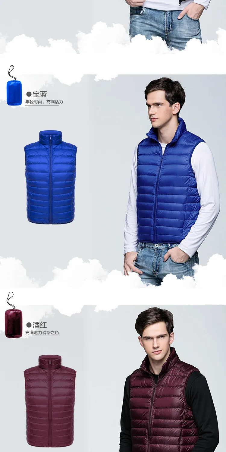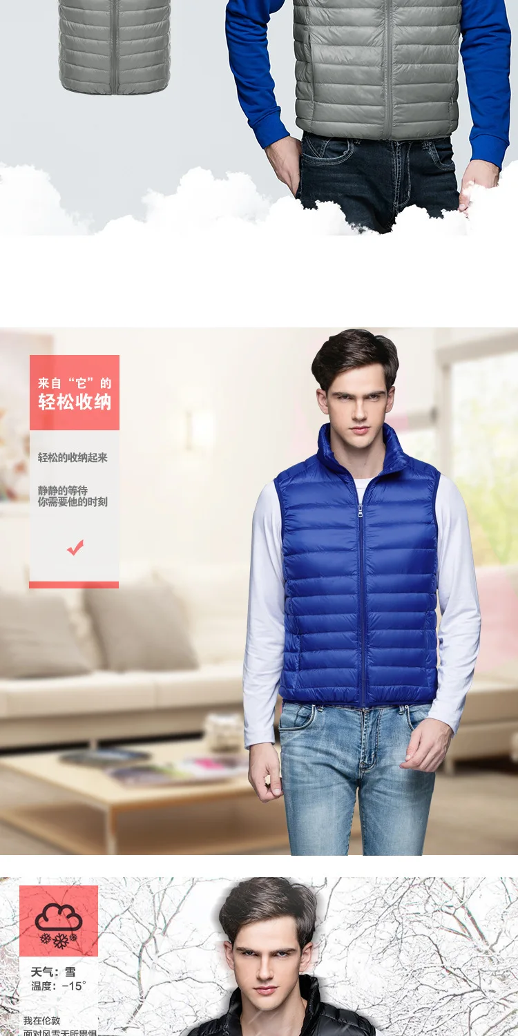 Зимний мужской пуховик, мужской теплый жилет, куртка без рукавов, осенняя легкая теплая безрукавка с подкладкой из утиного пуха