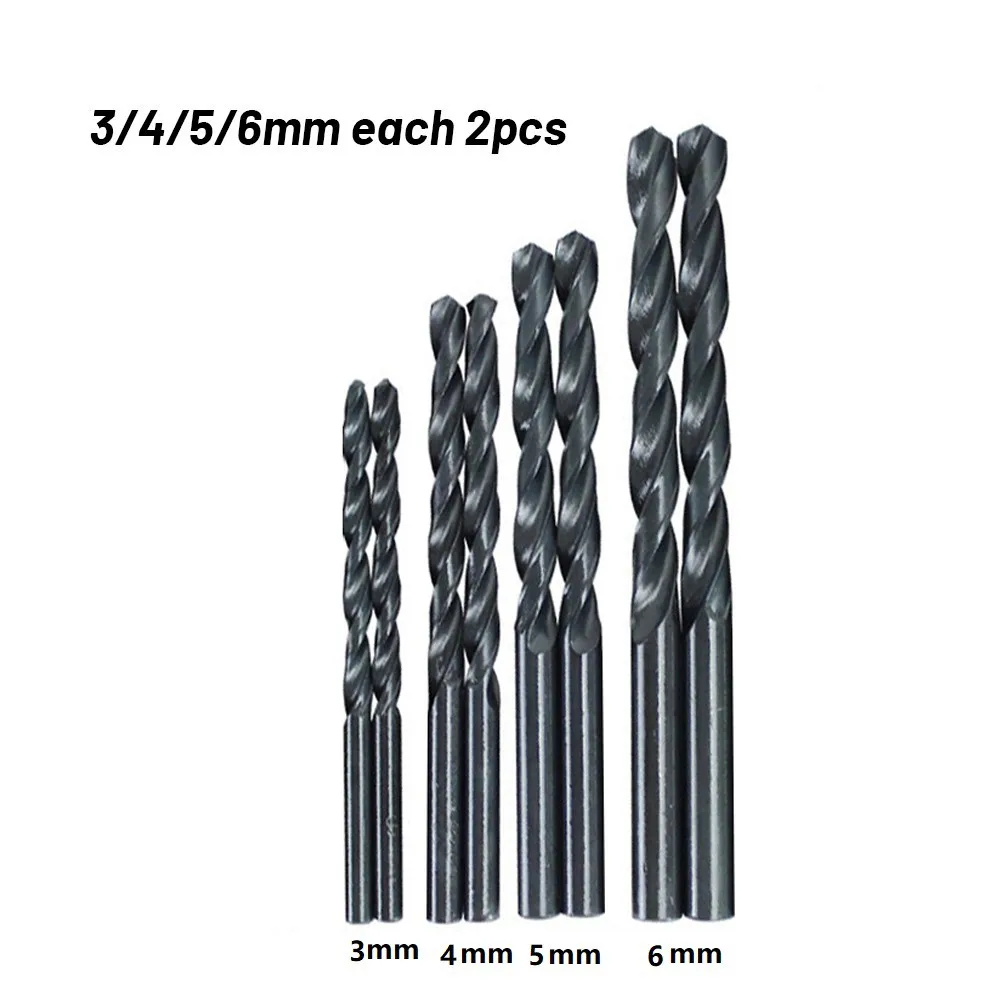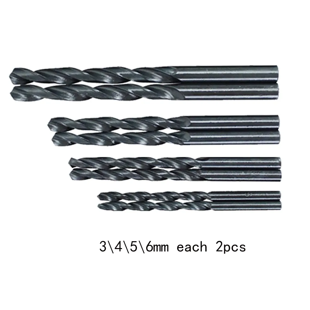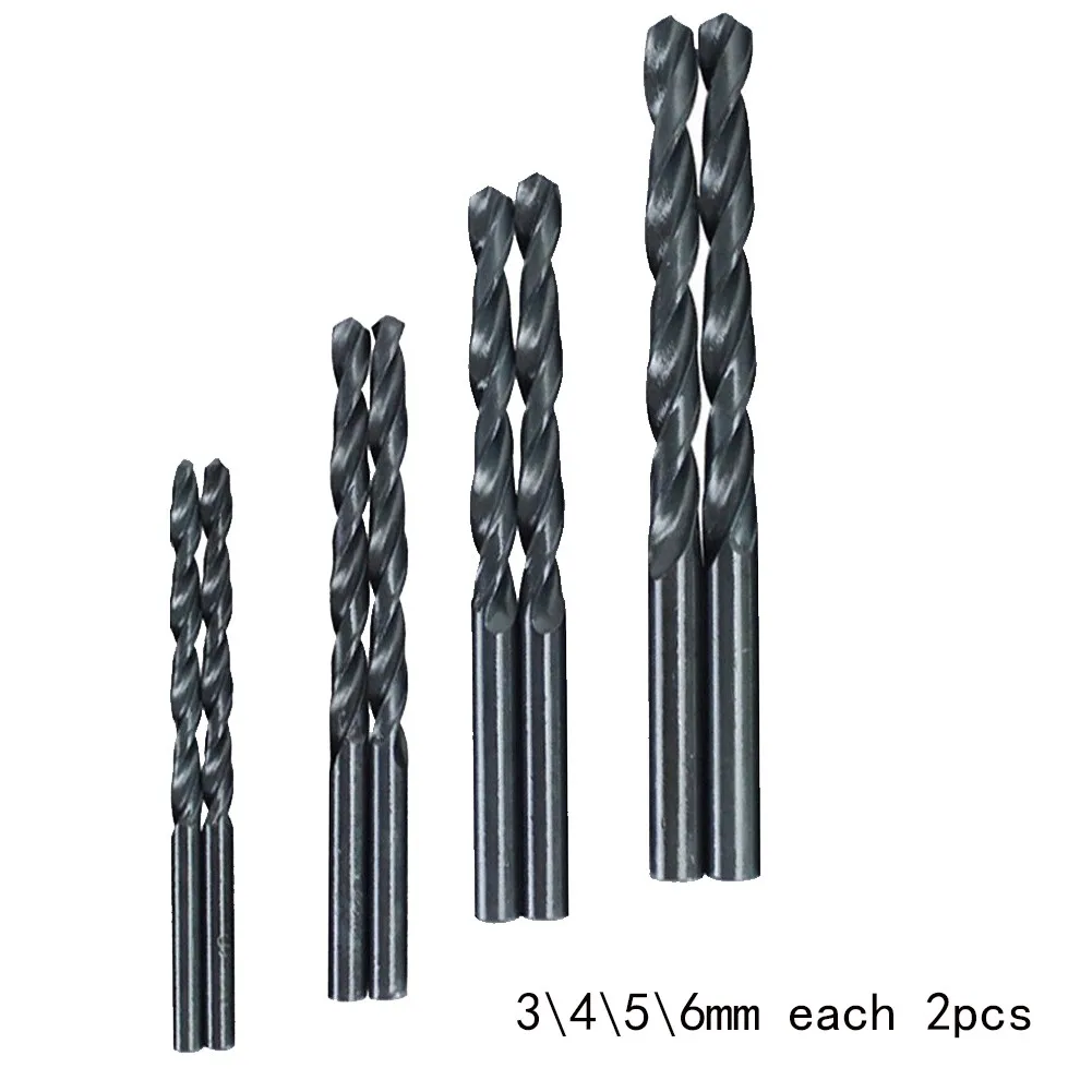 Набор сверл из быстрорежущей стали, комплект из 2 насадок из углеродистой стали с черным покрытием, диаметр хвостовика 3 мм, 4 мм, 5 мм, 6 мм