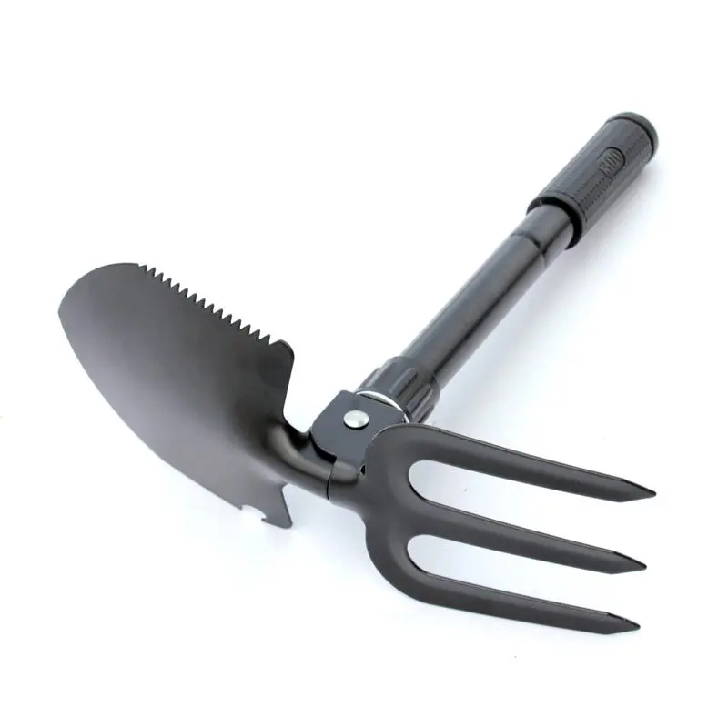 3. Его можно сложить, маленький размер и легко носить с собой. После разворачивания один конец-лопата, а другой-грабли. Гибкий, складной, ручка может быть горизонтальной и вертикальной, это необходимо для активного отдыха на природе
