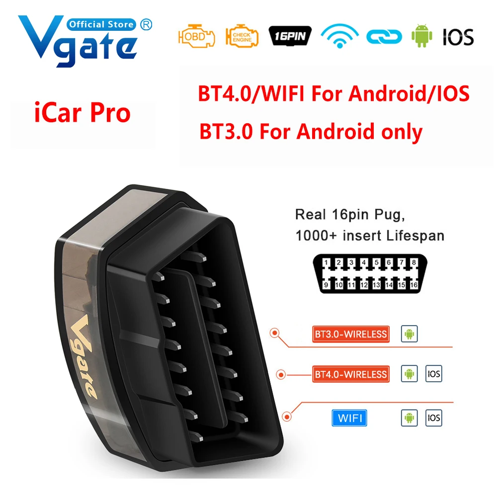 Vgate iCar Pro OBD II adpater-это высококачественный автомобильный инструмент для сканирования, поддерживает все протоколы OBD-II: