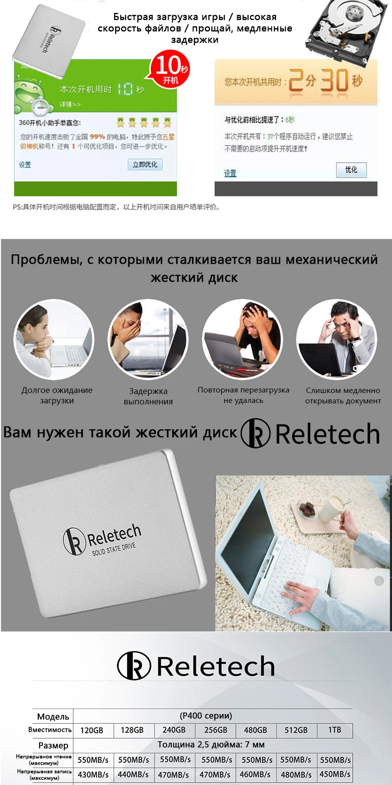 Внутренний твердотельный накопитель Reletech SSD 2,5 дюйма SATA Hdd SSD 128 ГБ 256 ГБ 512 ГБ SATA, жесткий диск для ноутбука и настольного компьютера