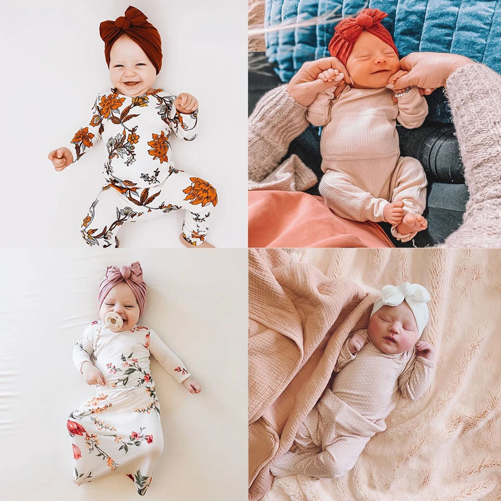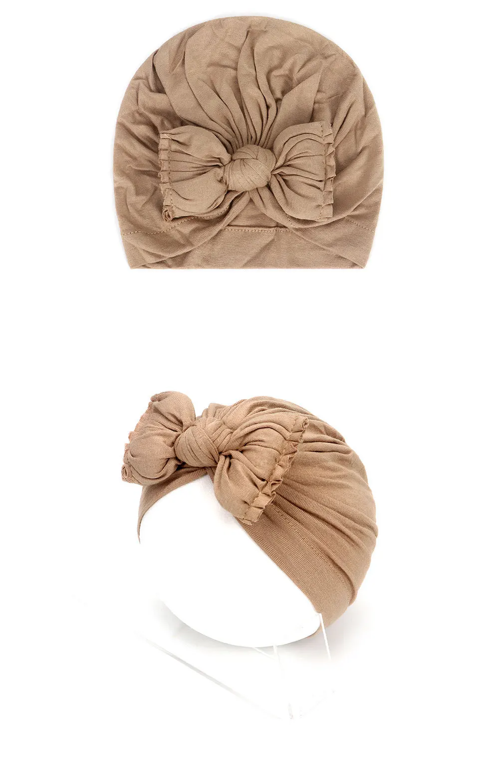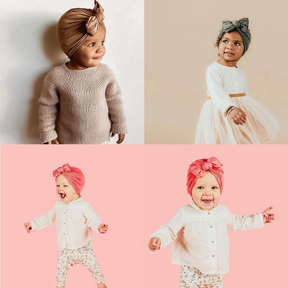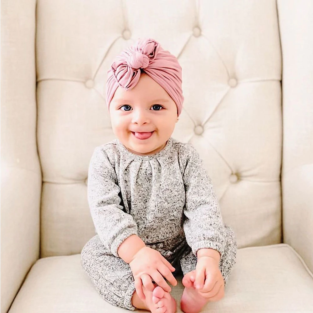 Новинка, однотонная хлопковая детская шапка, рандомный тюрбан с узлом, для новорожденных, с плиссированным бантом, индийская шапочка, детские шапочки для девочек и мальчиков