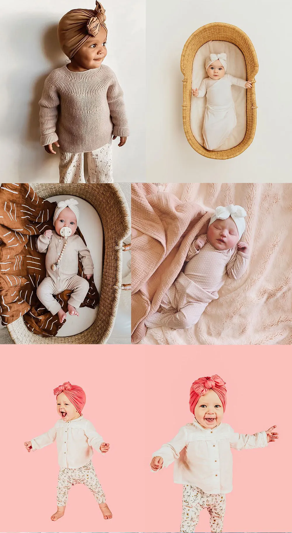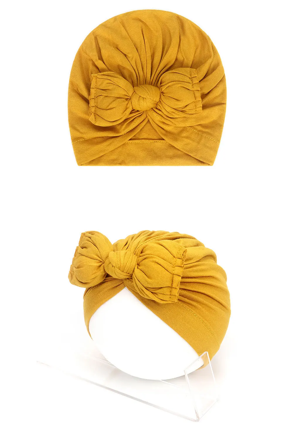 Шапка-бини для новорожденных, хлопковая шапка с узлом, однотонная м...