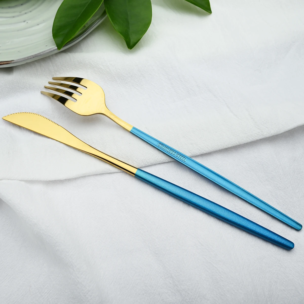 Набор столовых приборов из нержавеющей стали, зеркальный, цветной н...