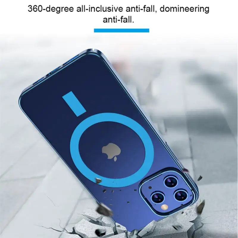 Прозрачный Магнитный безопасный Жесткий Чехол для iPhone 13 13 Pro Max Mini, Противоударная задняя крышка с покрытием для беспроводной зарядки