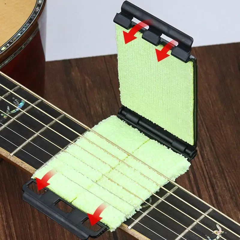 В Струны для гитары Scrubber Это лучший выбор для очистки вашей гитарной струны Все время! Он будет сделан из Высококачественная ткань из микро-волокна, В сочетании с его Удобная эргономичная ручка И Все вокруг обрезки дизайн очистки, Обеспечивая Легко и повсюду Очищающее действие просто Подтягивание вверх и вниз На веревке!
