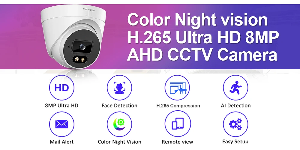 Камера видеонаблюдения NINIVISION, 8 Мп, Full Color, ночное видение