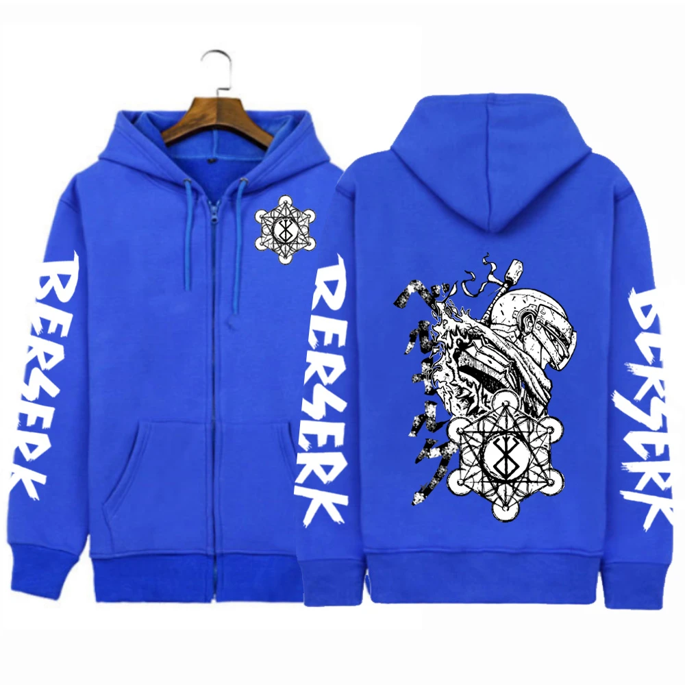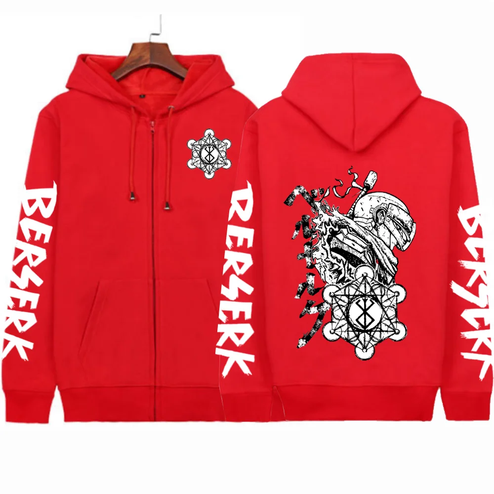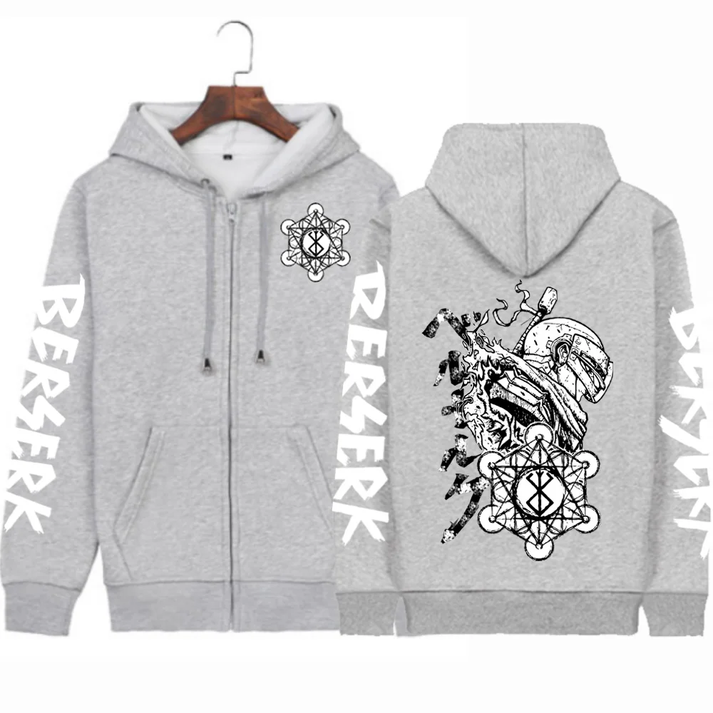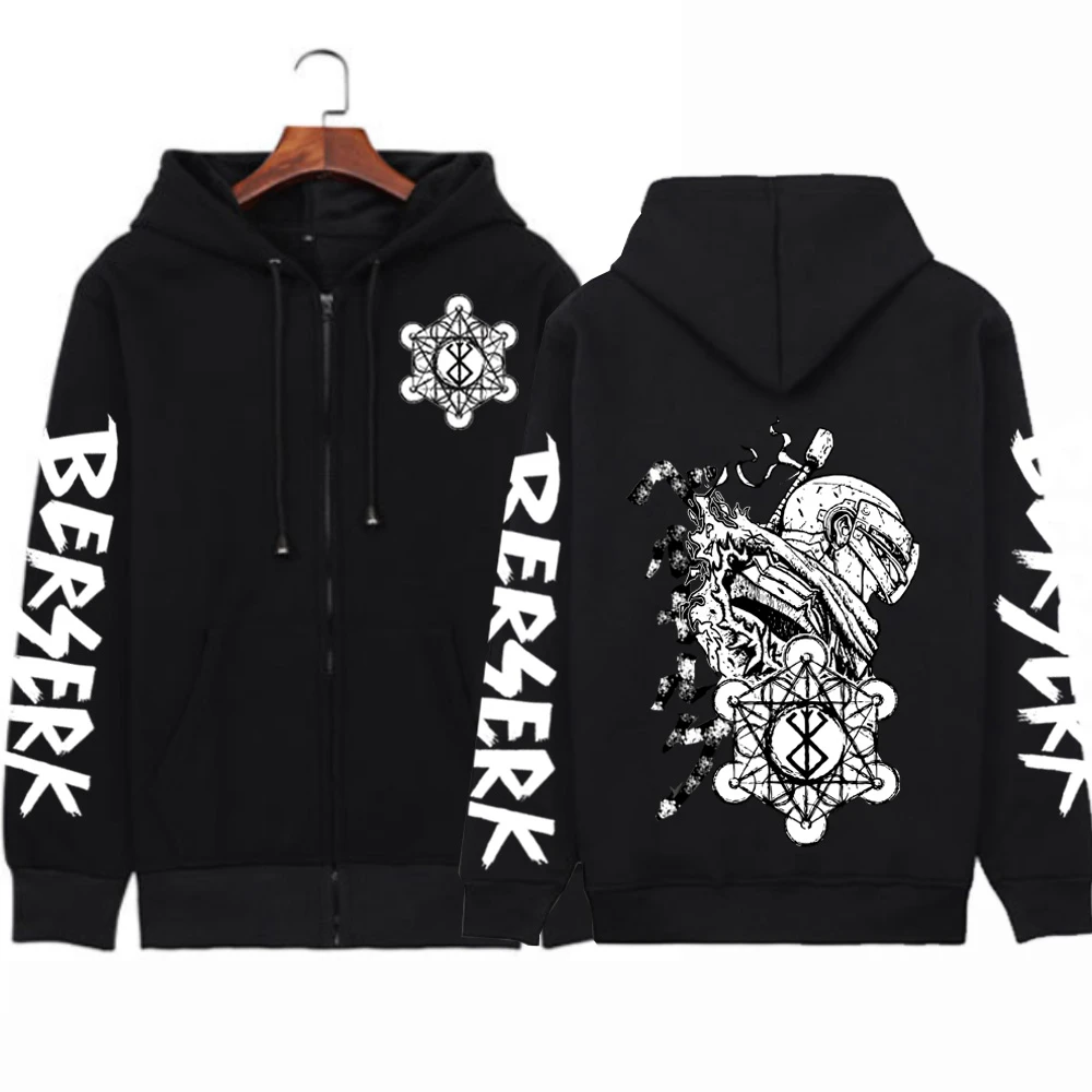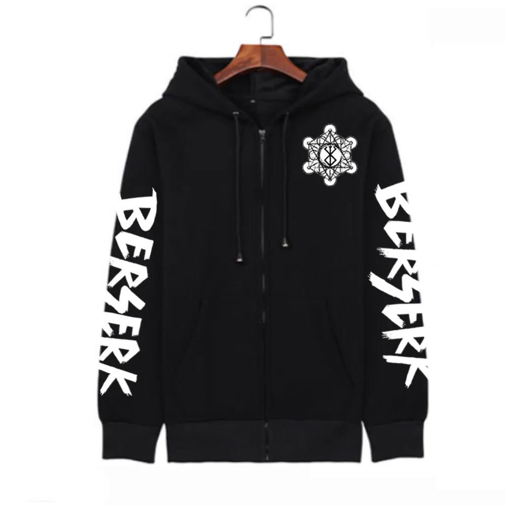 Осенне-зимнее пальто на молнии с капюшоном модная Толстовка Harajuku Berserk крутая одежда с свободным рукавом для мужчин и женщин Harajuku Puck