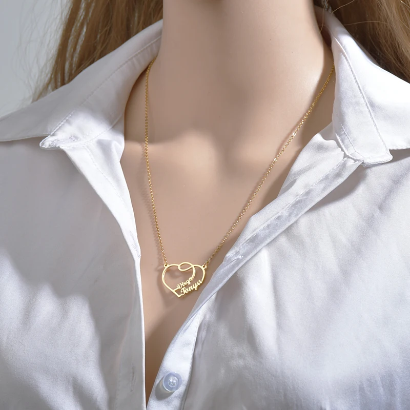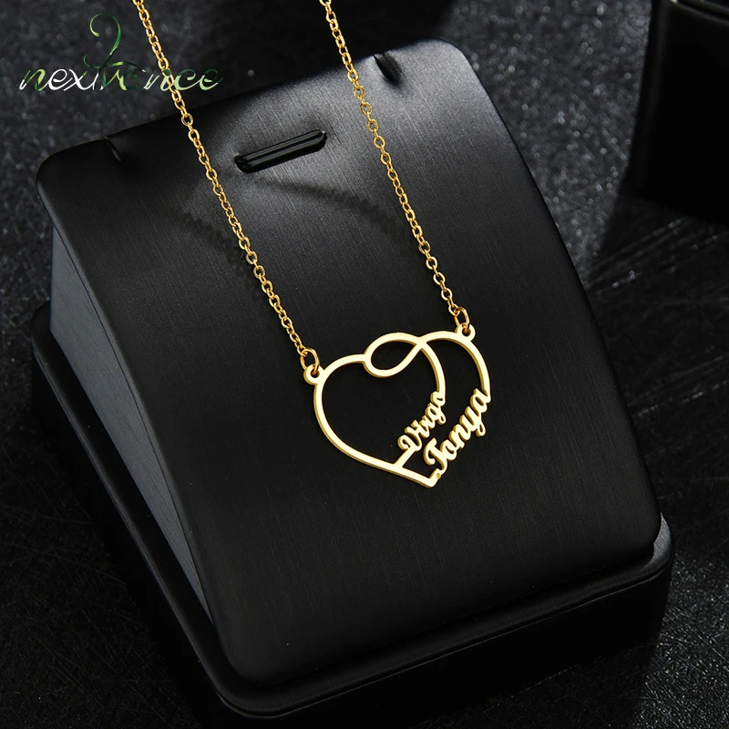 Nextvance милые индивидуальные два имени ожерелье из нержавеющей стали Персонализированный Кулон Сердце ожерелья для женщин пара ювелирных изделий подарок