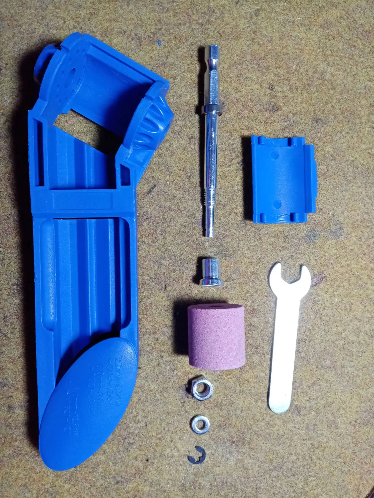 Инструмент, полученный в состоянии от изображения. При повороте ось застревала, и было трудно ходить в двух местах. Я порвал все детали и поворачивал шлифовальный круг в противоположном направлении (рис. 3). После сборки вращение было нормальным без задержек или царапин во время ходьбы. Сам шлифовальный круг не отличается высоким качеством, но он удовлетворен, учитывая, что можно получить более качественные или аналогичные размеры. Перед началом работы слегка масляите контактные точки вала и рукава на обоих концах, чтобы продлить срок службы. Я еще не пробовал заточки, но я уверен, что с умеренным давлением все будет хорошо.