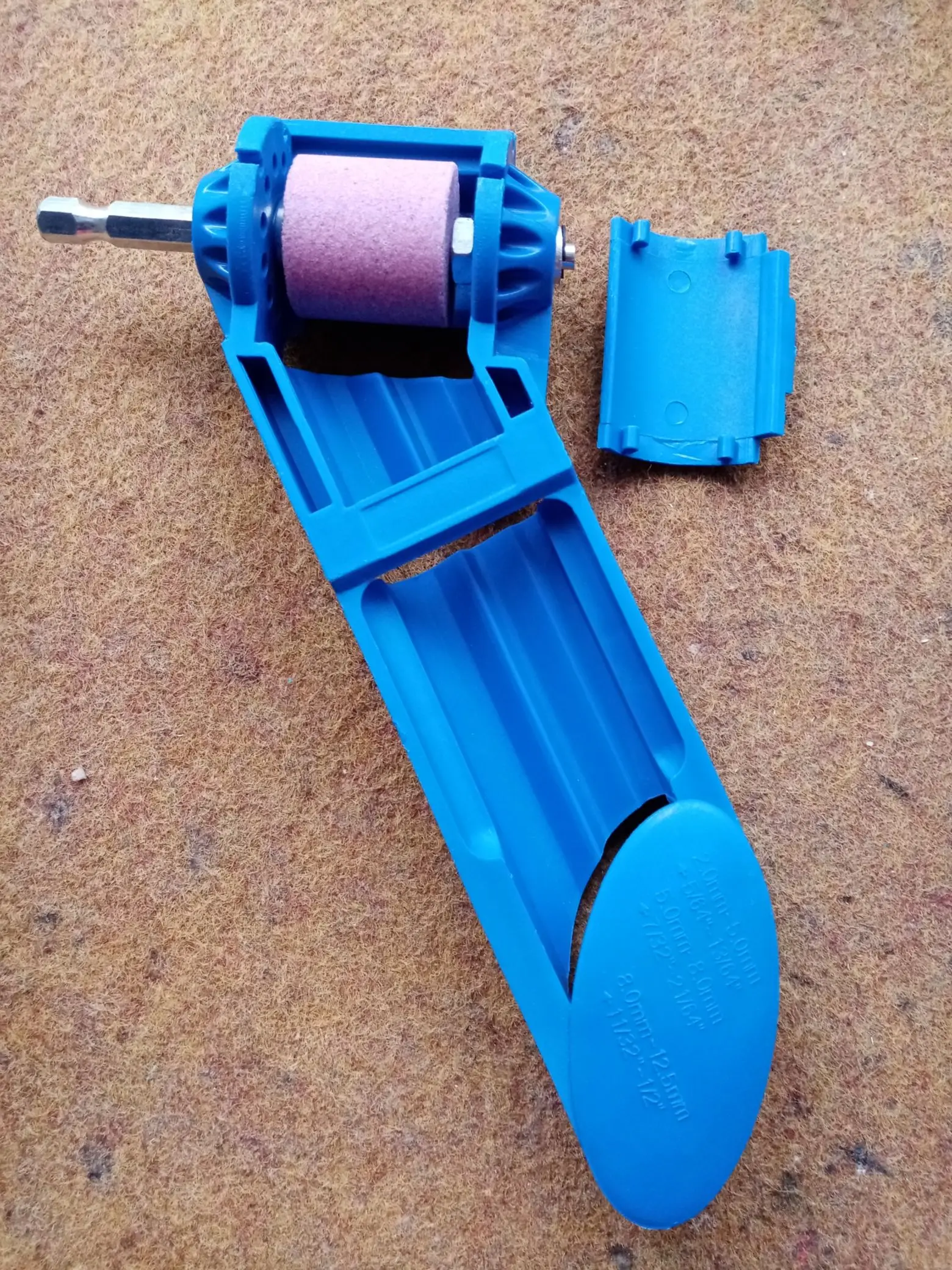 Заточка полная хрень. Одновременно надо поддавливать сверло на камень и вращать. Сколько видео посмотрел чтоб разобраться что к чему. Так никто и не понял.