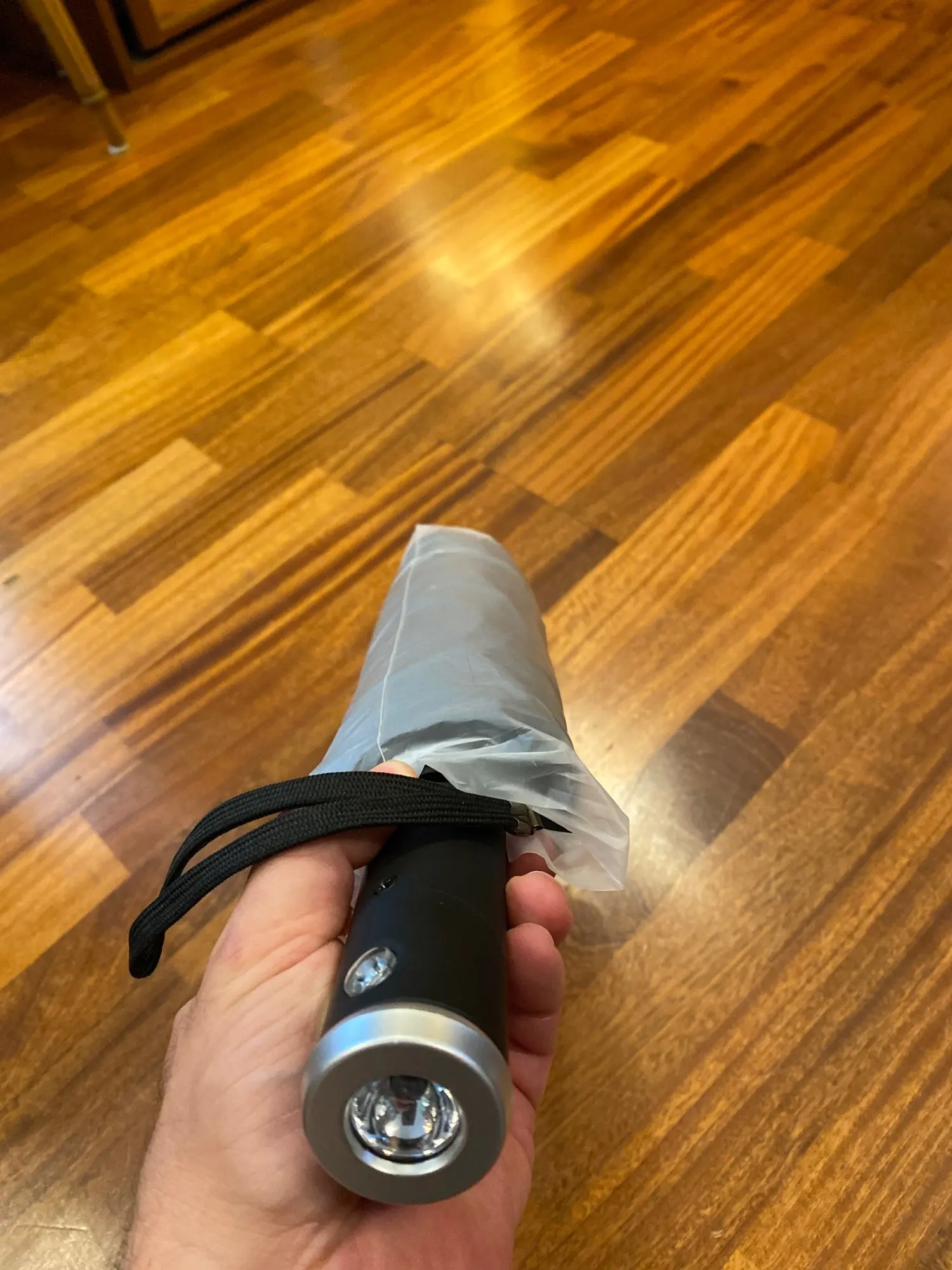 Really good quality umbrella, fits well in the side of a backpack and it's really comfortable. You can open and close it with the push of a button, and it didn't get stuck a single time. Flashlight wasn't working when it arrived but I managed to open it and fix it easily.