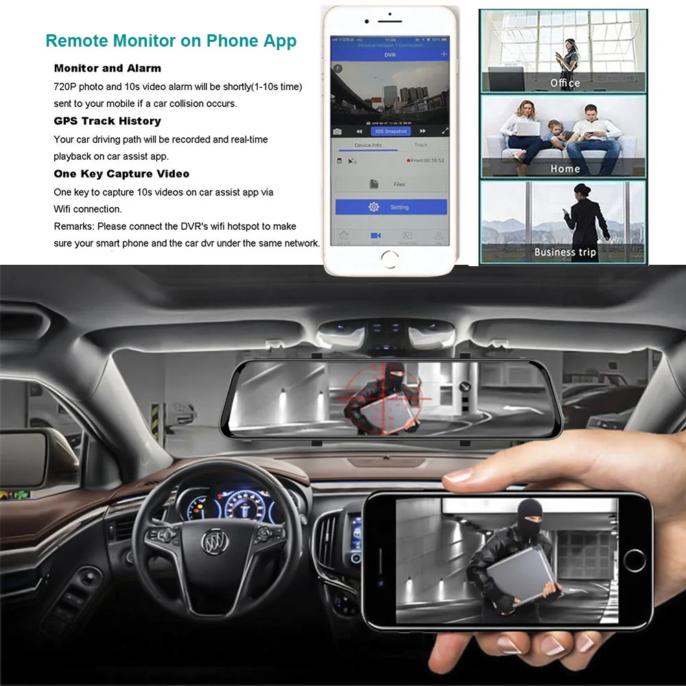 Зеркало заднего вида HGDO 12 ", Автомобильный видеорегистратор с 4G...