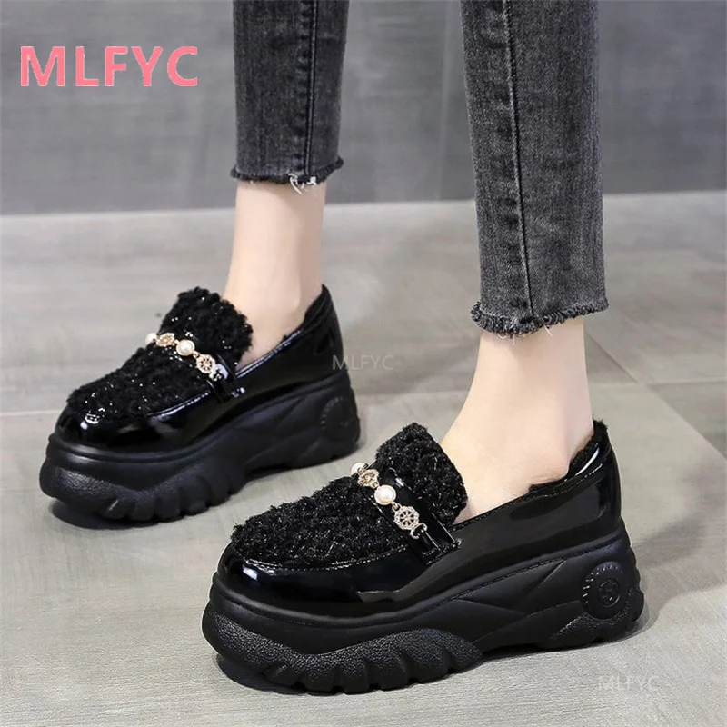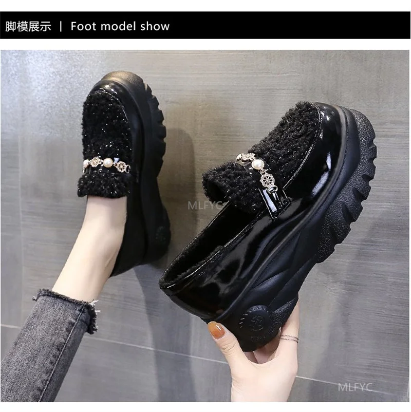 Ботинки женские из лакированной кожи, на толстом каблуке, осеньзима...