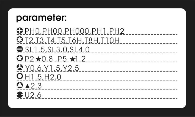 Torx T2,T3,T4,T5,T6H,T8H,T10H
