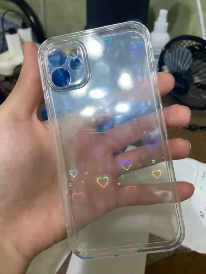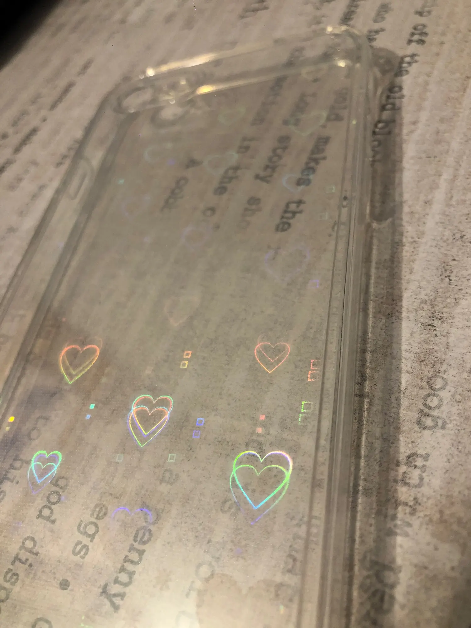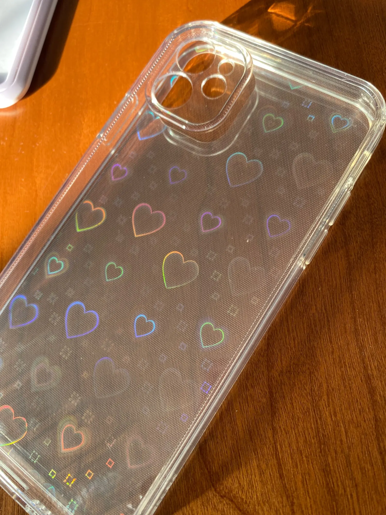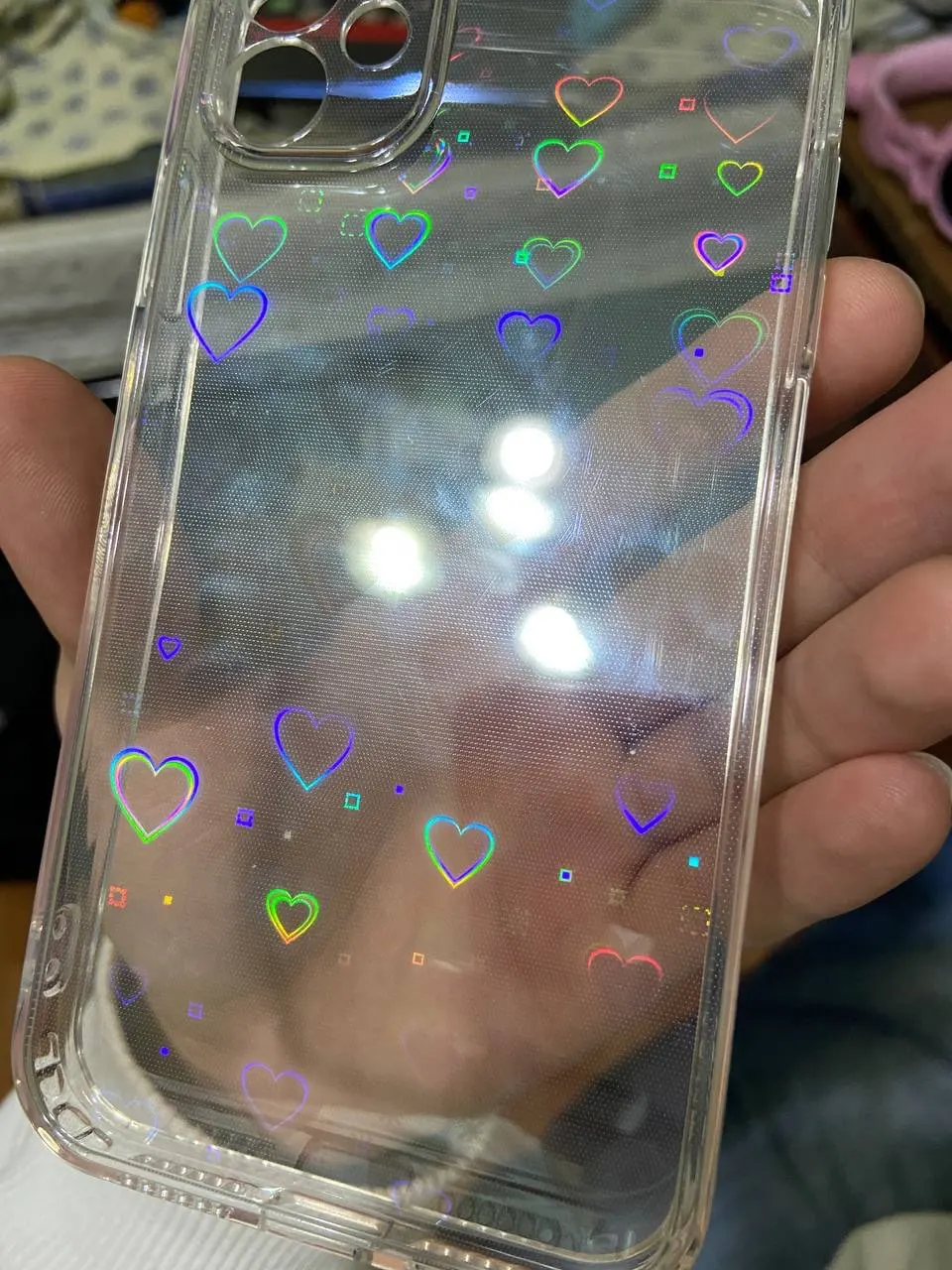 Я напечатаю сердце на телефоне, но оно на прозрачном листе, который находится внутри чехла для телефона.