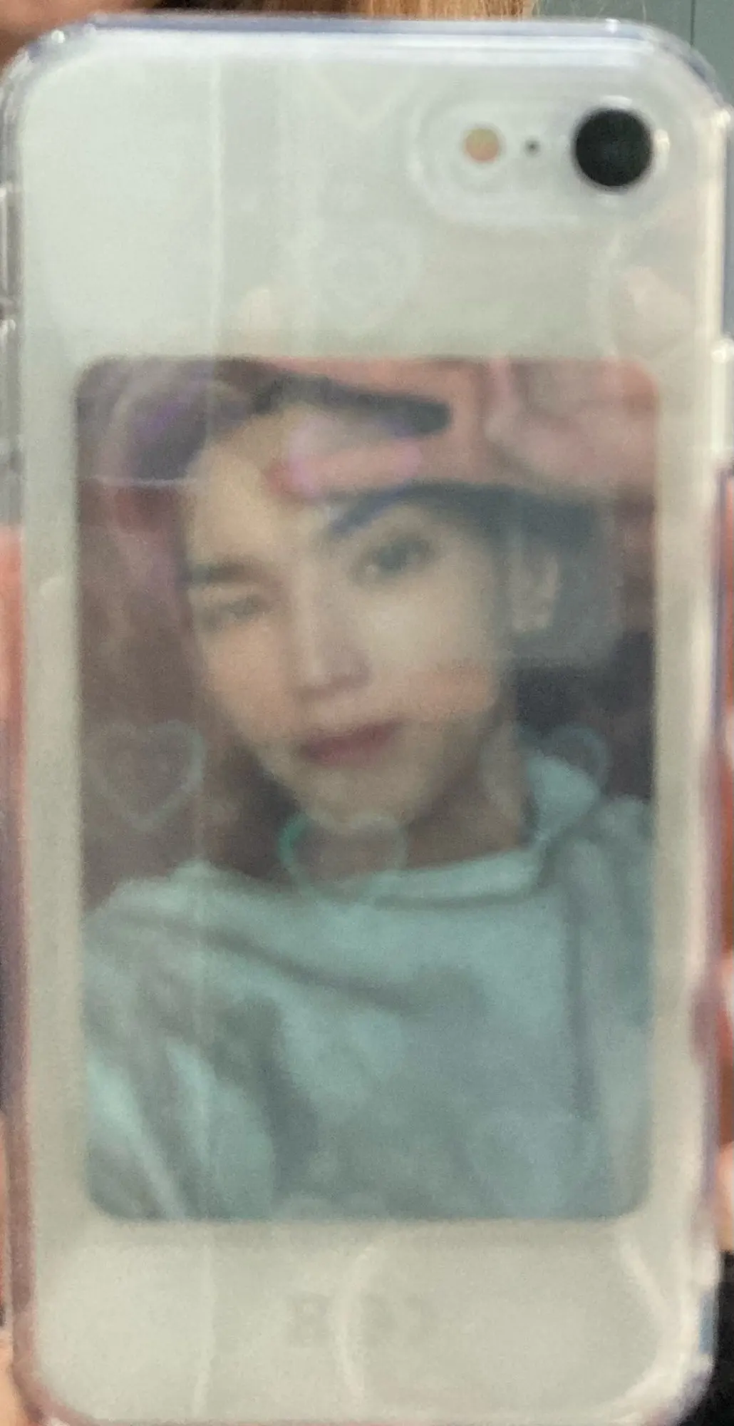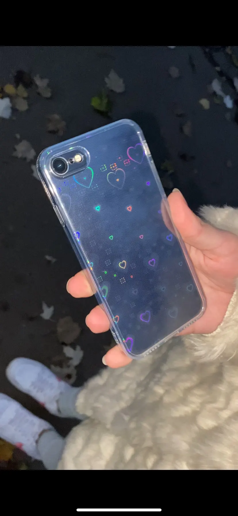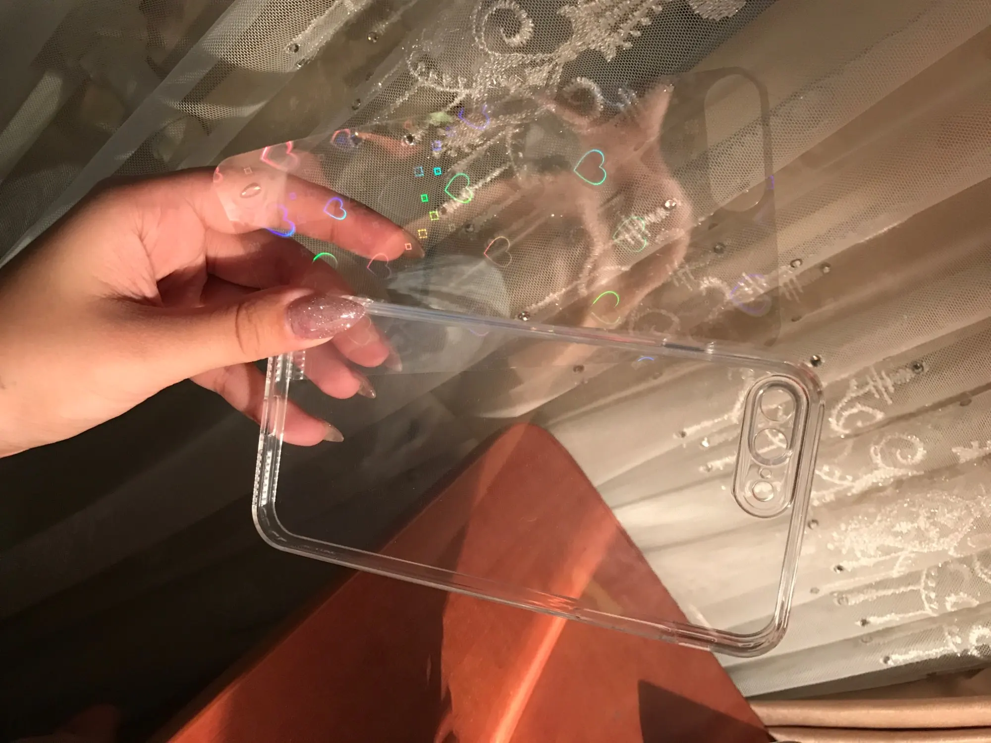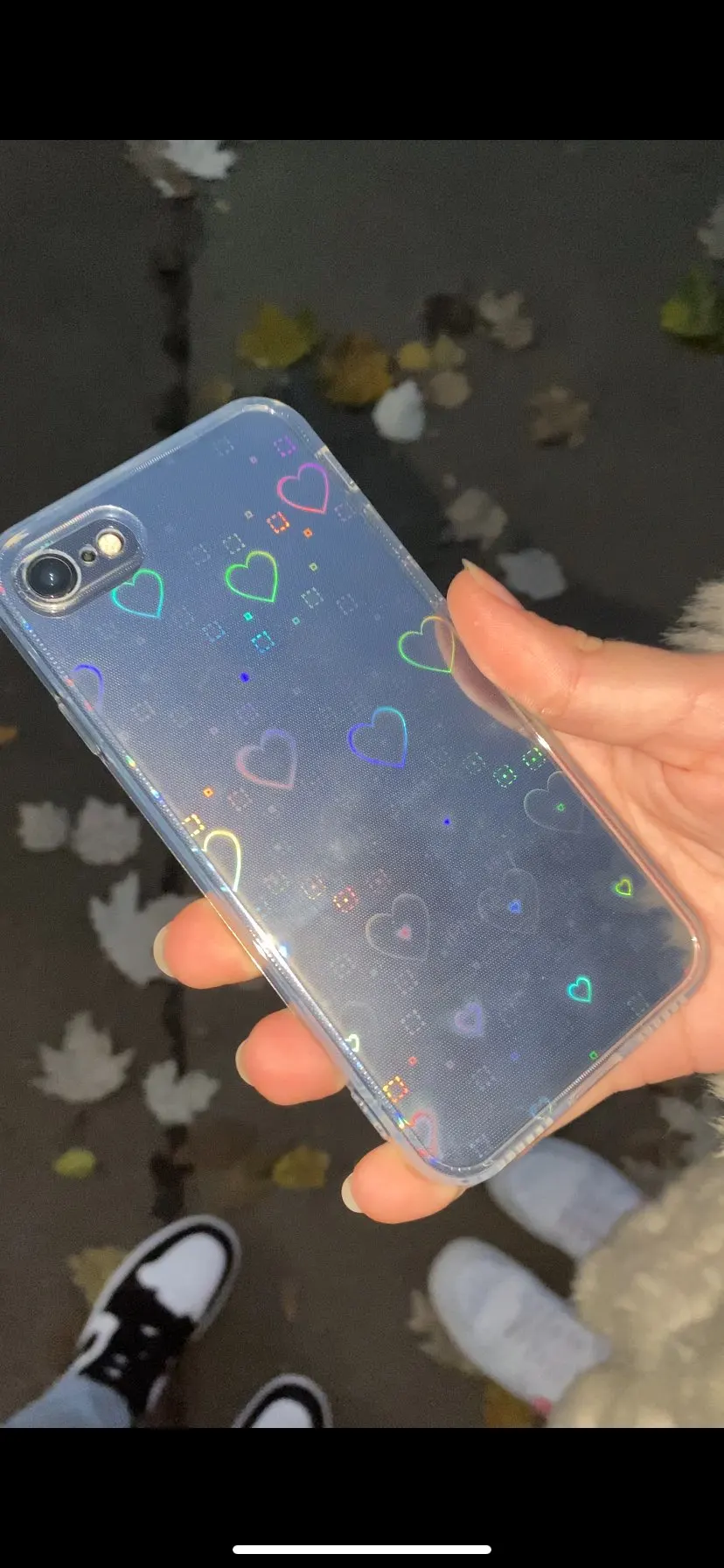 Я напечатаю сердце на телефоне, но оно на прозрачном листе, который находится внутри чехла для телефона.