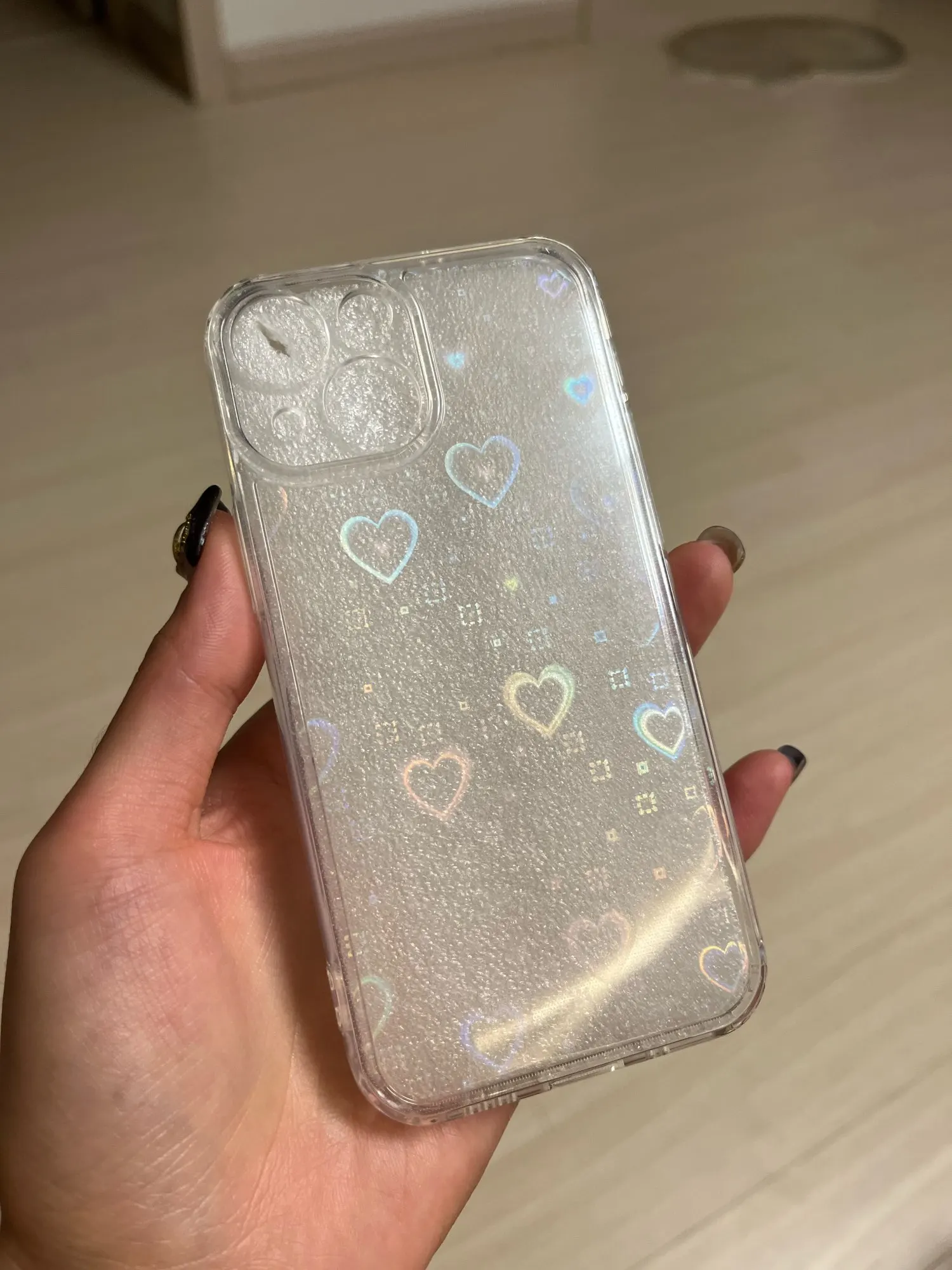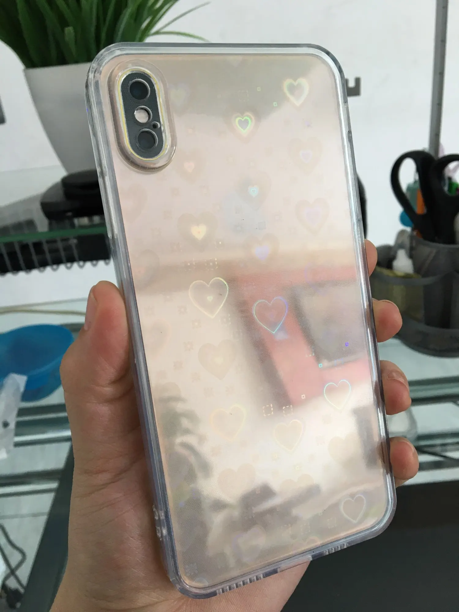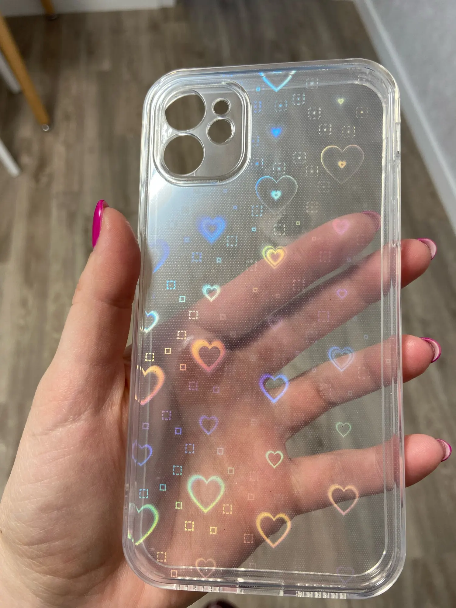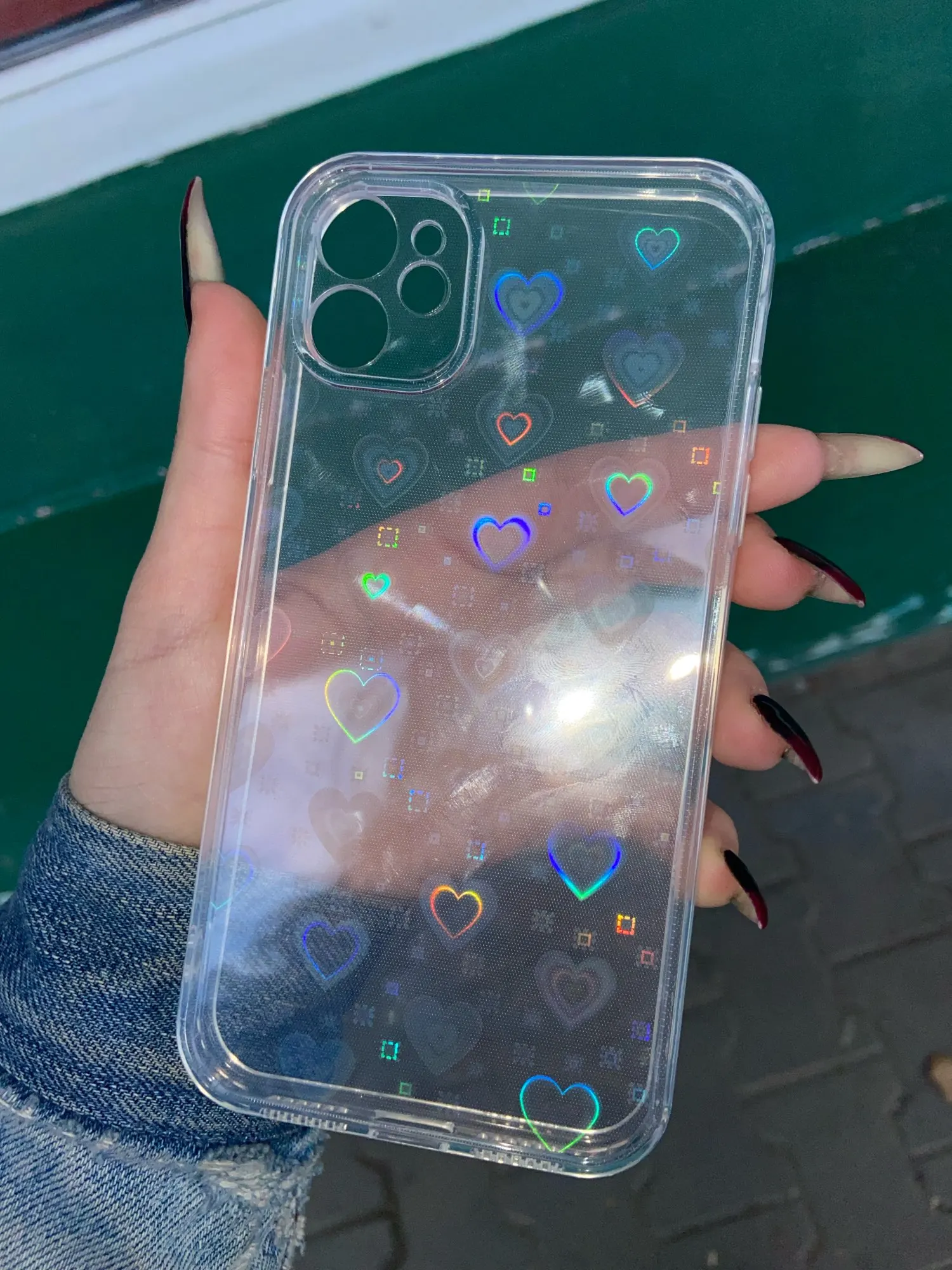 Голографический Цветок Прозрачный чехол с сердцами для iPhone 11 12 Pro Max 13 Mini XR 7 8 Plus XS X SE 2 мягкий красочный лазерный чехол