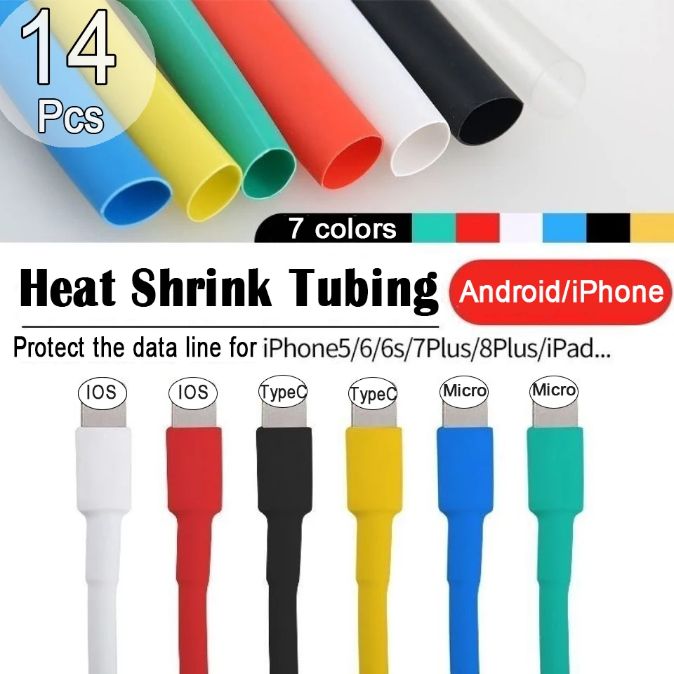 Особенности:Новинка и высокое качествоМатериал: термоусадочная трубкаЦвет: смешанный цветДлина: 6 см каждого цвета. Отрежьте необходимый размер, когда вы закрываете usb-кабель.Только для кабеля Apple (8pin). iphone5/5S/6/6S/7/8/6plus/6Splus/7plus/8plus/iPad4/и т. Д.Примечание: кабель для быстрой зарядки Apple 18W USB C не подходитПосылка включает в себя:14 шт/пакет смешанных цветов защитная трубка
