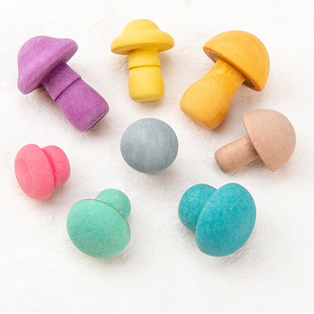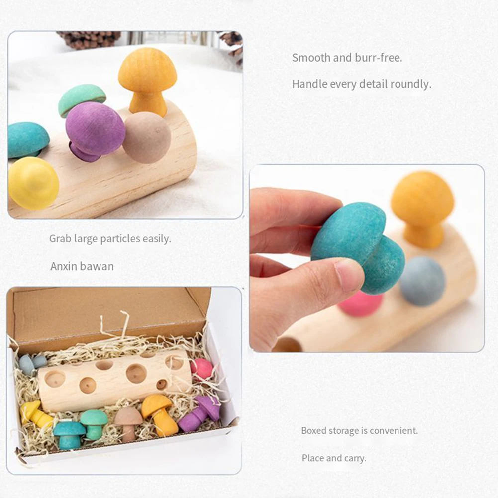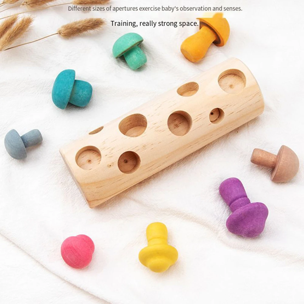 Деревянные радужные блоки, игра Монтессори для сбора грибов, Обучающие деревянные детские игрушки, развивающая форма, подходящая сборка, захват