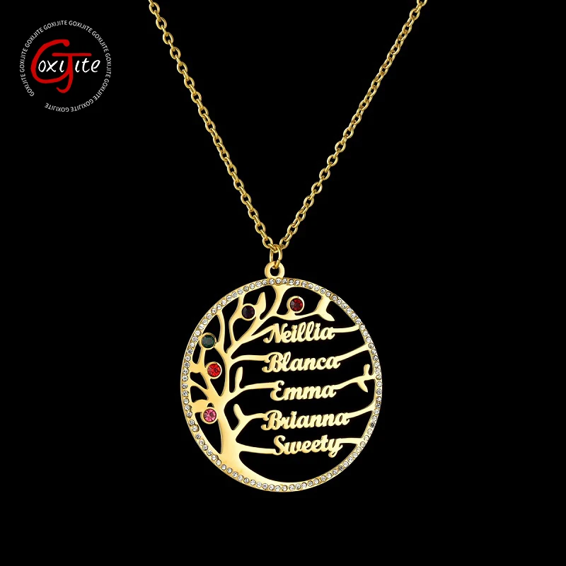 Goxijite, индивидуальное ожерелье с различными наименованиями женское, персонализированное ожерелье из циркония с именем жизненного дерева, подарочное ожерелье из нержавеющей стали