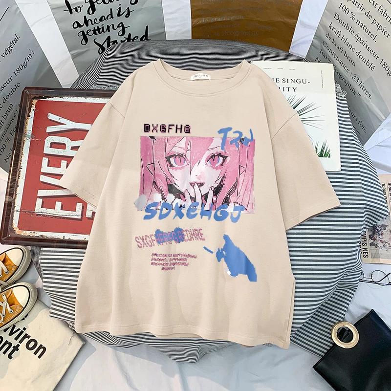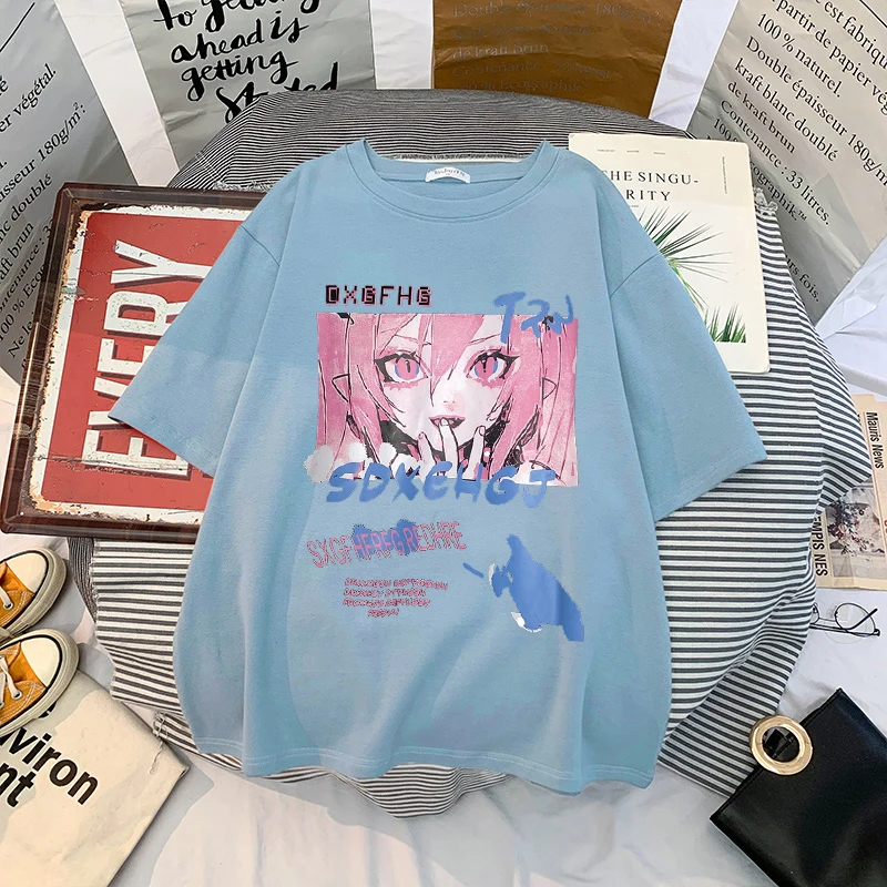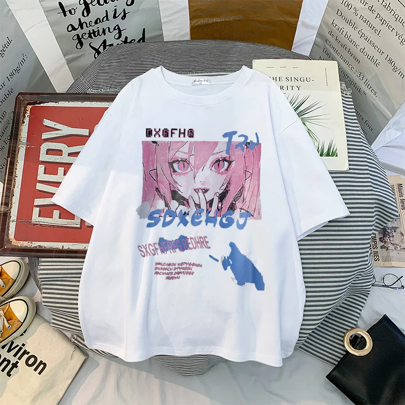 Футболки женские с аниме принтом гранж, свободная футболка в стиле стимпанк, Готическая женская летняя одежда в стиле Харадзюку, кавайная Эстетическая одежда y2k