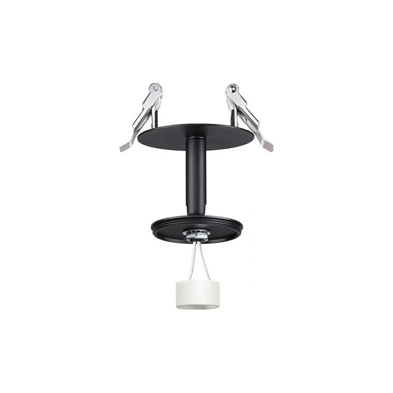 Встраиваемый светильник от компании Novotech является потолочным и предназначен для помещений, оформленных в стиле техно. Изделие имеет следующие размеры: высота - 100мм, диаметр - 75мм.Имеется возможность подключения диммера, если установить галогеновую лампу. Цвет арматуры - черный. Материал арматуры - дюралюминий.