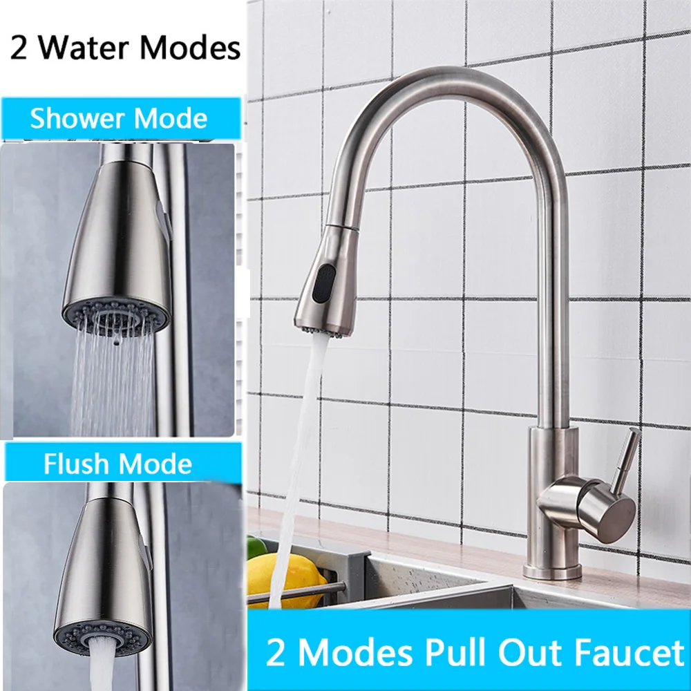 Кухонный кран из нержавеющей стали, выдвижной кухонный кран для горячей и холодной воды, поворотный кран