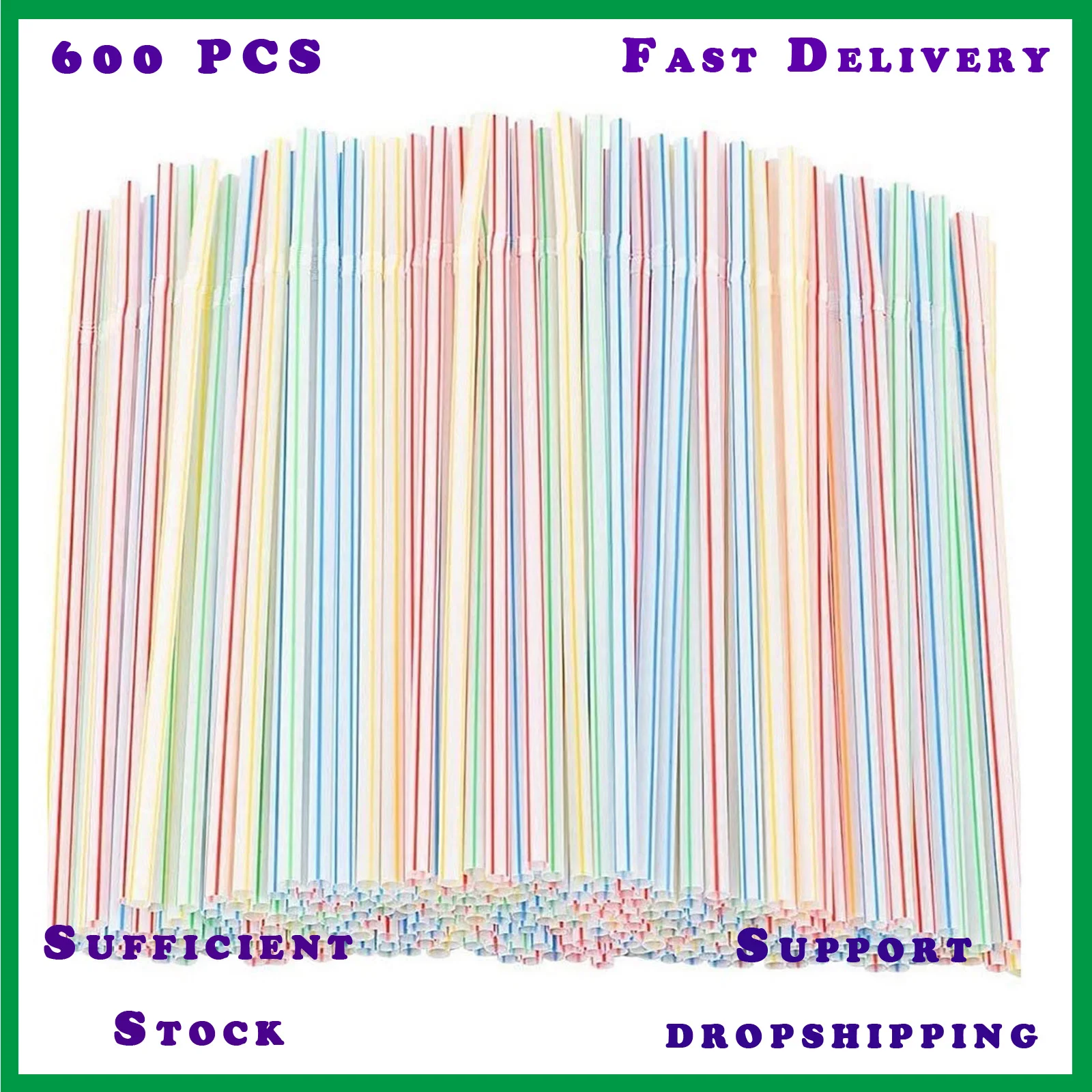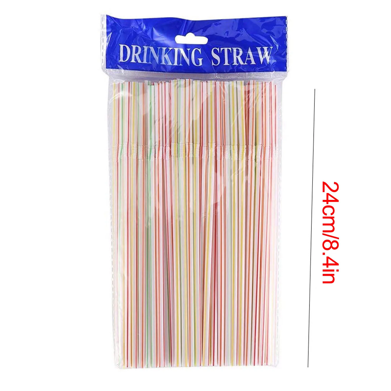100 штук пластиковых соломинок 8 дюймов Длинные многоцветные полоса...