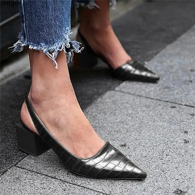 Женские туфли-лодочки с острым носком, босоножки на среднем массивн...