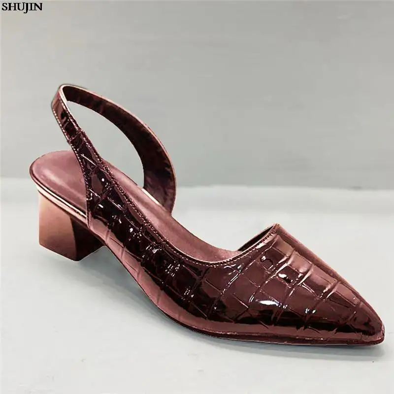 Сандалии женские на среднем массивном каблуке, босоножки с ремешком на пятке, заостренный носок, из натуральной кожи, Винтажная обувь для танцев на ремешке с ремешком на пятке
