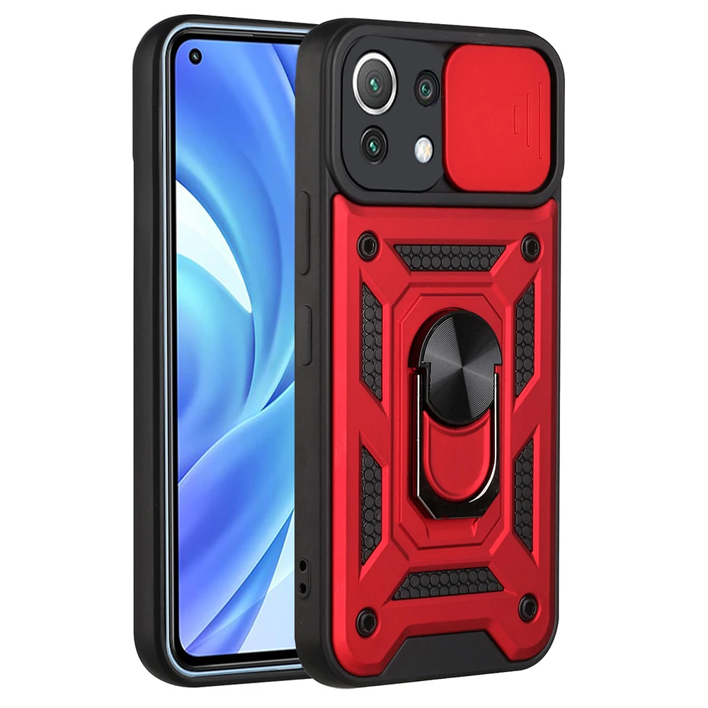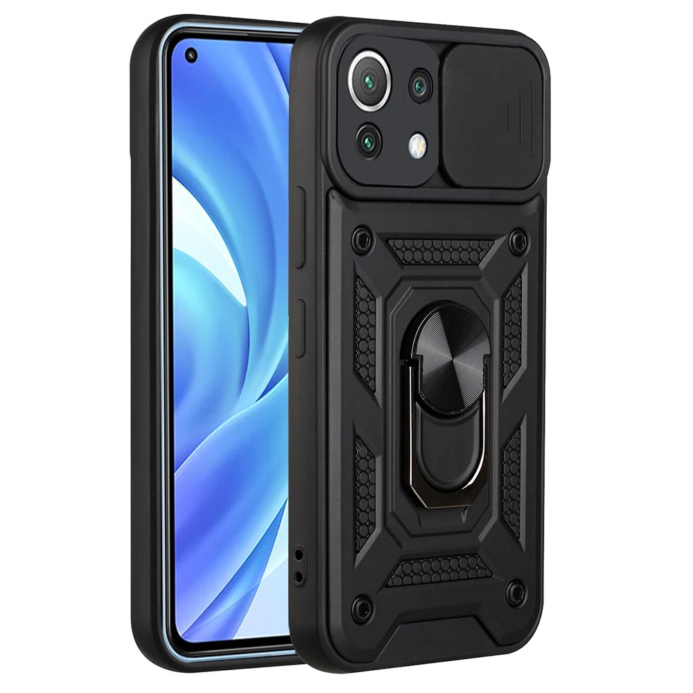 Бронированный чехол с кольцом-держателем и окошком для xiaomi mi 11 lite 11i 11 lite light xiomi 11 lite mi11i, Мягкий противоударный чехол-бампер