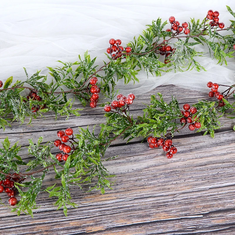 150 см креативный Рождественский цветок лоза красные ягоды сосновый орех зеленые листья
