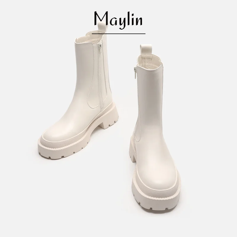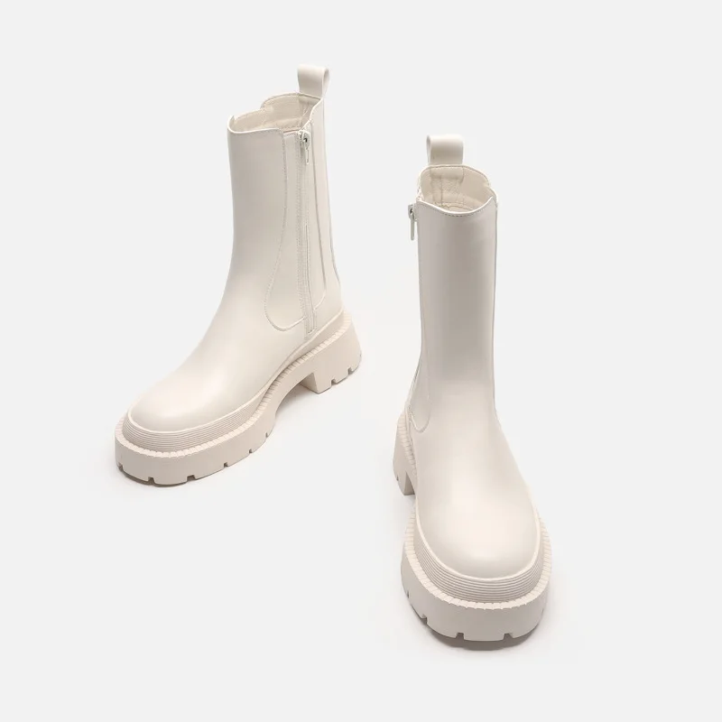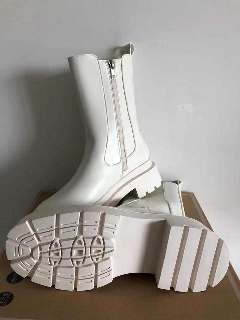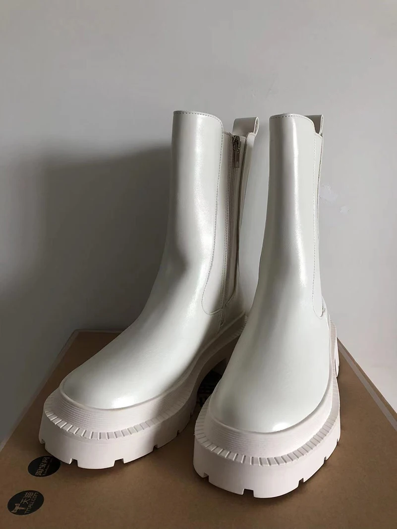 Женские ботильоны челси на плоской подошве ZA, модные ботинки до середины икры на молнии, синие, белые, Осень-зима 2021