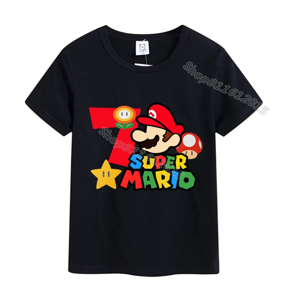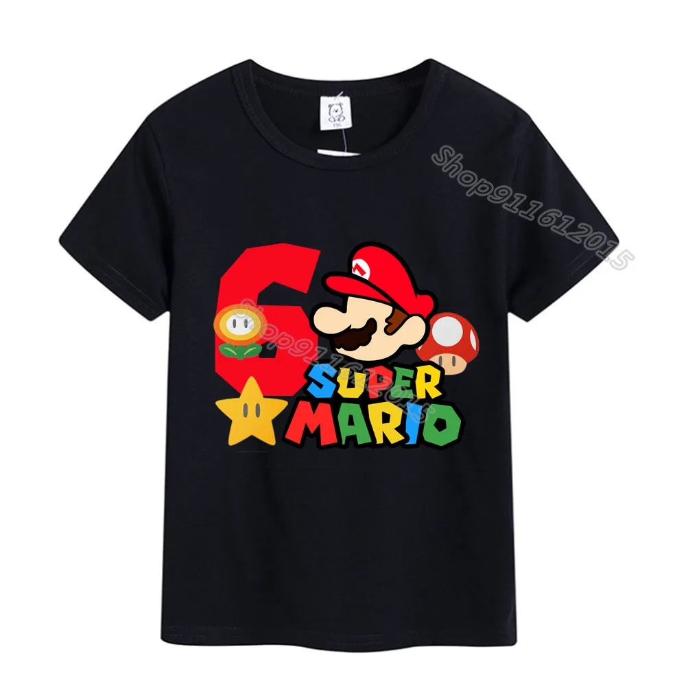 Детская Хлопковая футболка с изображением Марио, с коротким рукавом и цифрами, летняя одежда с принтом для маленьких мальчиков и девочек