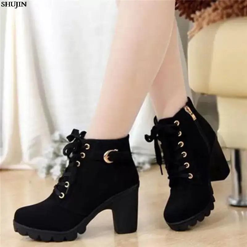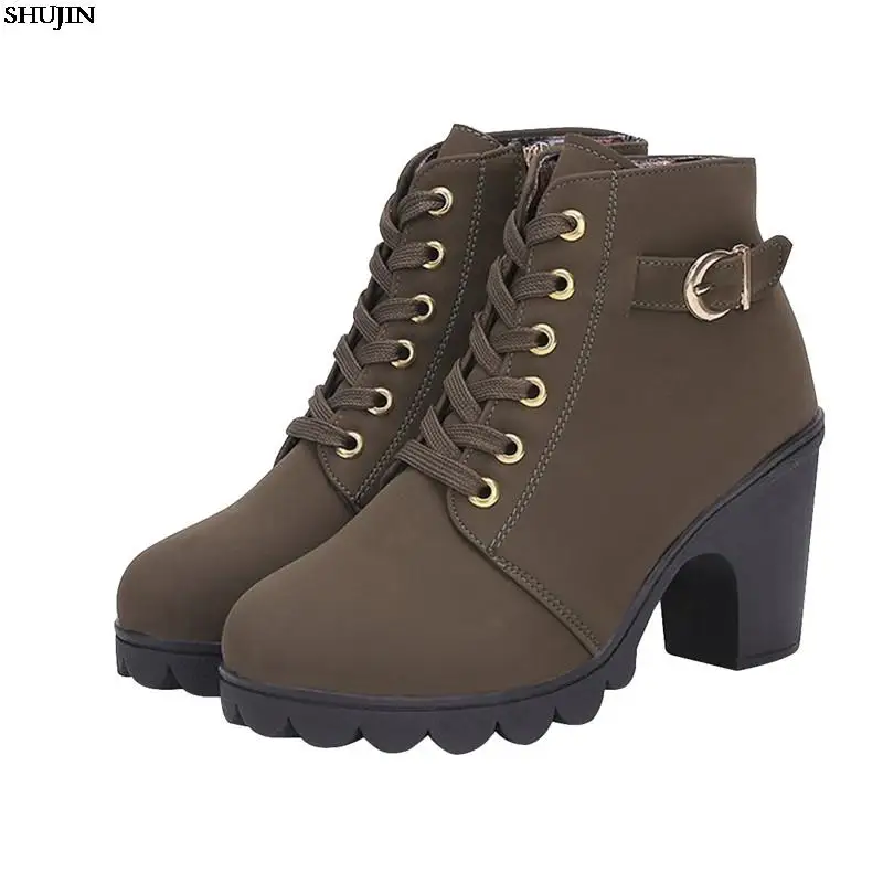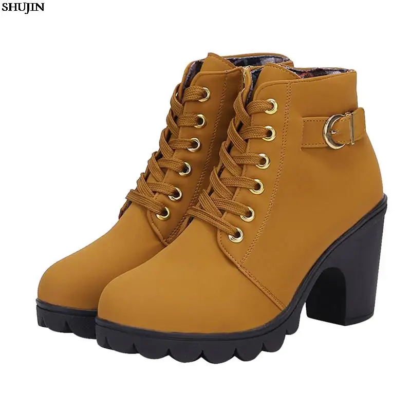 Зимние женские туфли-лодочки, женские туфли-лодочки с боковой молнией, искусственная кожа, женская обувь на платформе со шнуровкой, резиновая обувь, сапоги