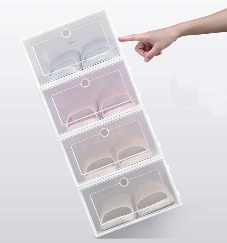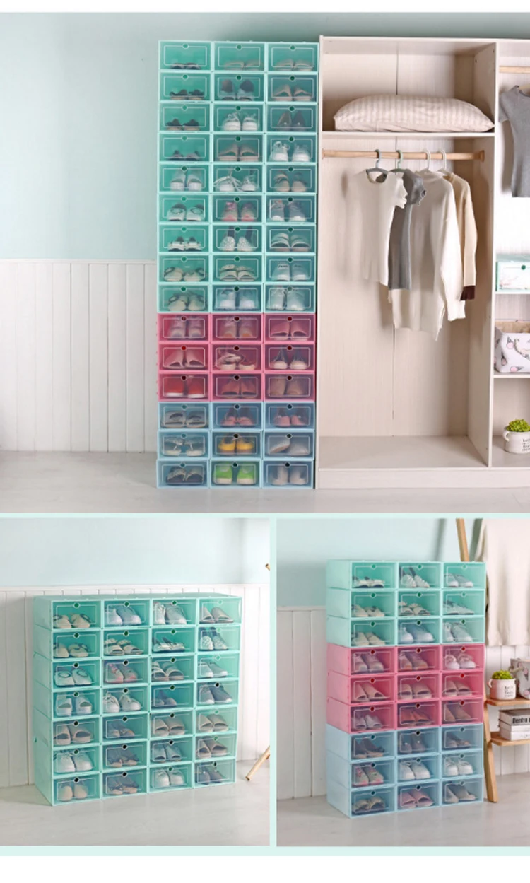 Набор коробок для обуви, 1 шт., многоцветный складной пластиковый прозрачный органайзер, полка для обуви, дисплей, органайзер для хранения, одна коробка