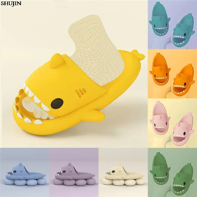 Женские пляжные тапочки в форме милой акулы на толстой подошве