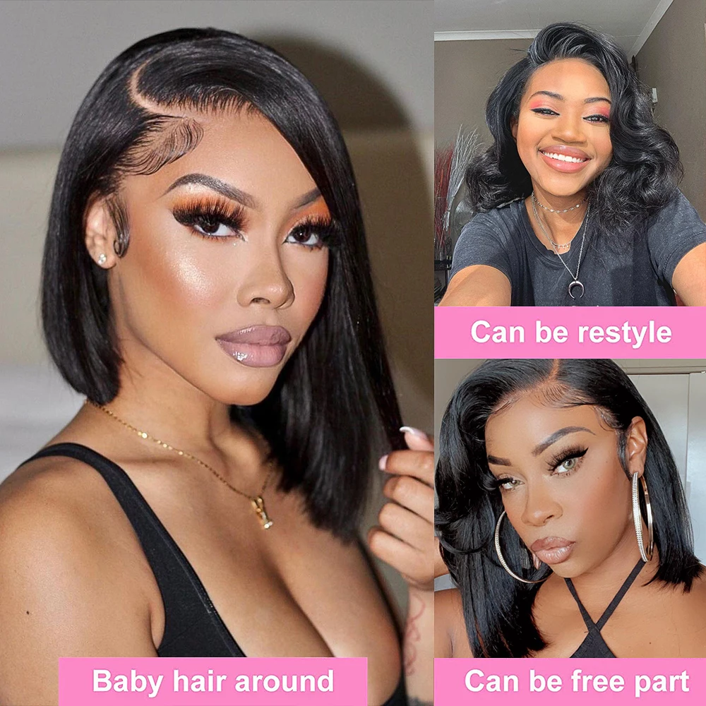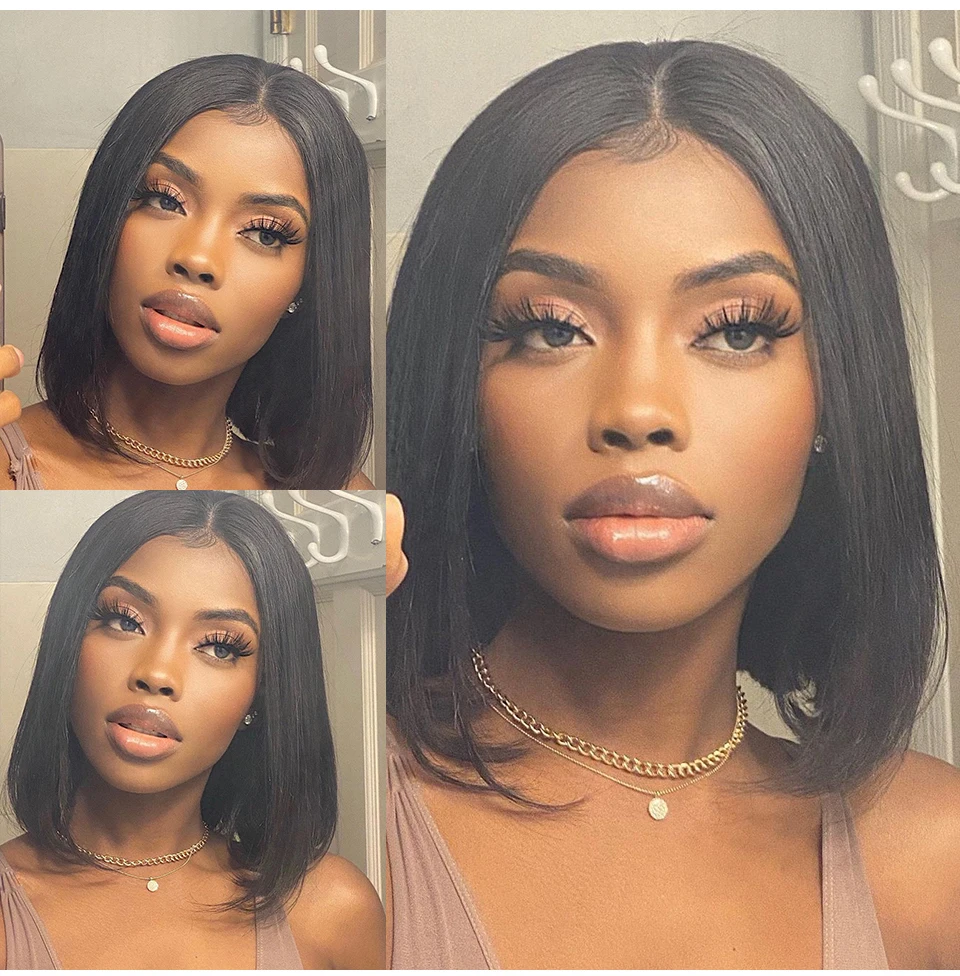 Короткий парик Боб 13*4, парик из прямых человеческих волос на сетк...