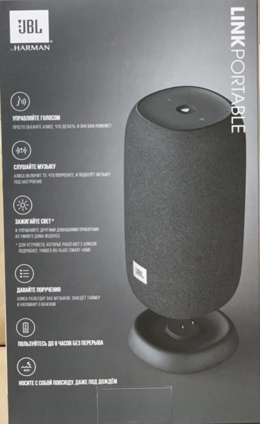 Получили супер такие везде дороже. Посмотрим как себя покажет)))) на первы взгляд очень даже. Громкость немного уступает JBL Charge 4. Алиса послушная))))))))