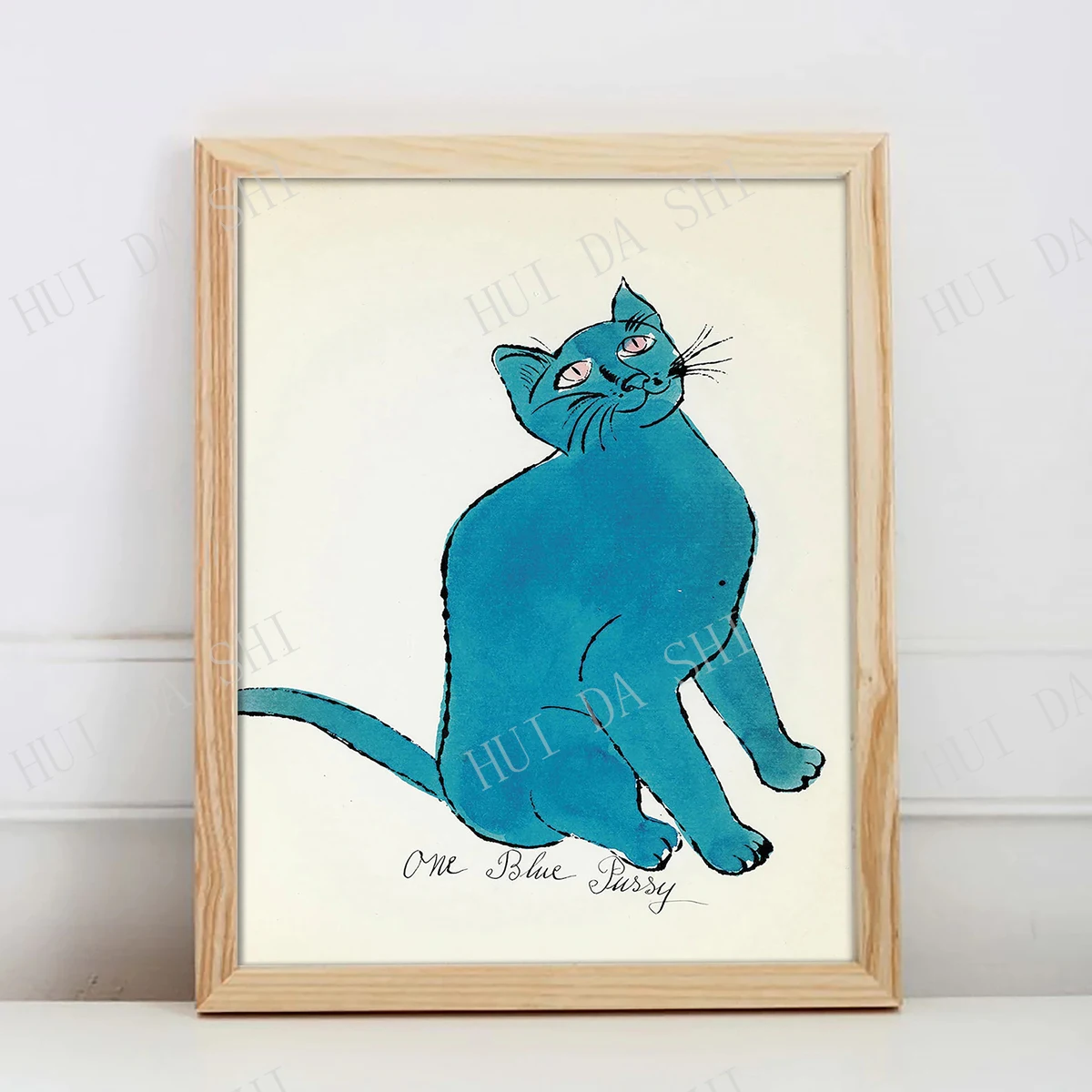 Художественная печать One Blue Pussy - Andy Warhol, Художественная печать с животными, рисунок в стиле поп-арт, Художественная печать, современное искусство, художественный плакат с котом
