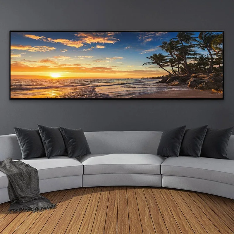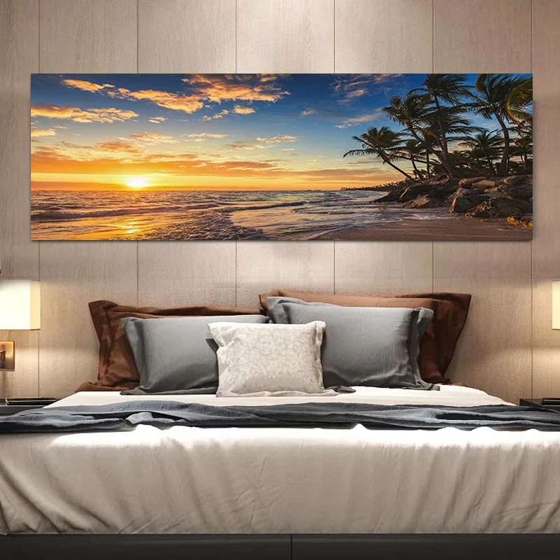 Пейзаж, холст, Постер, закат, пляж, дерево, морской пейзаж, живопись, печать в гостиной, тропический остров, искусство на стену