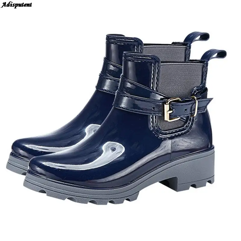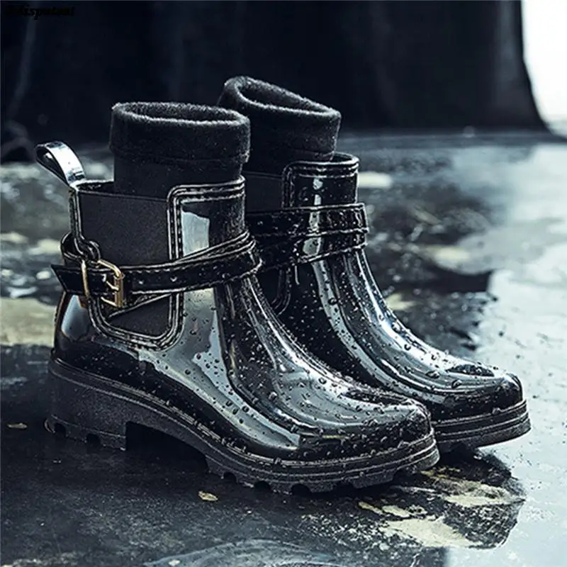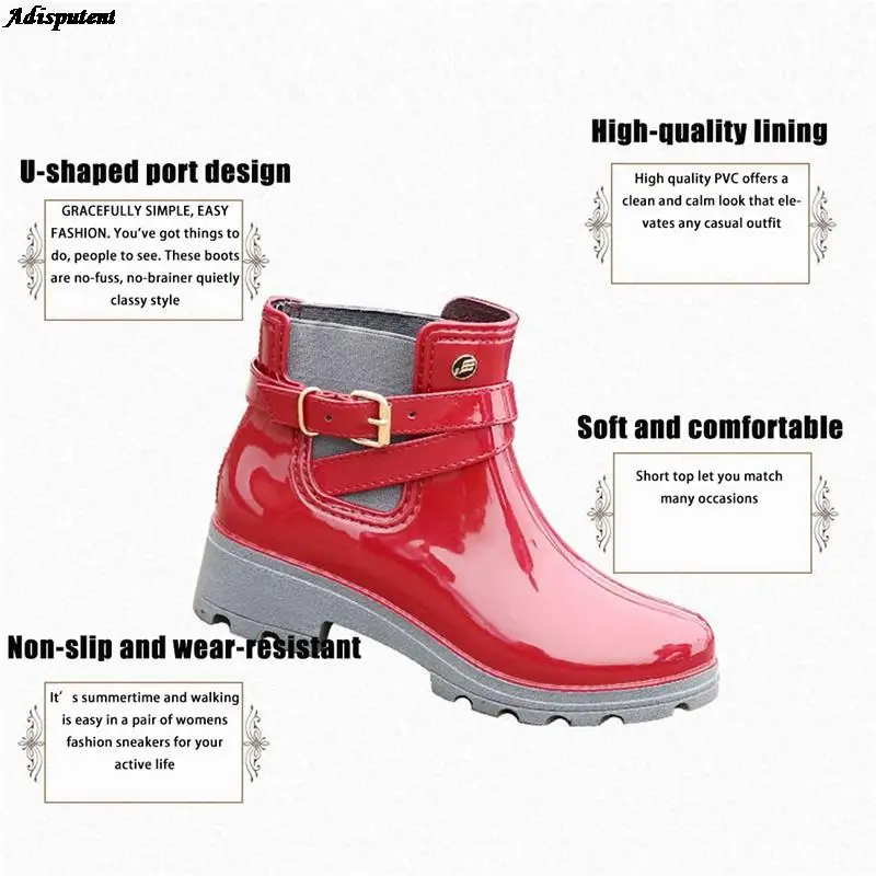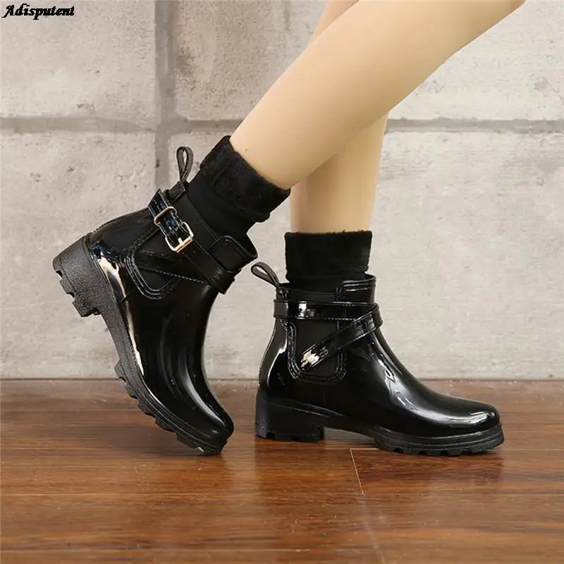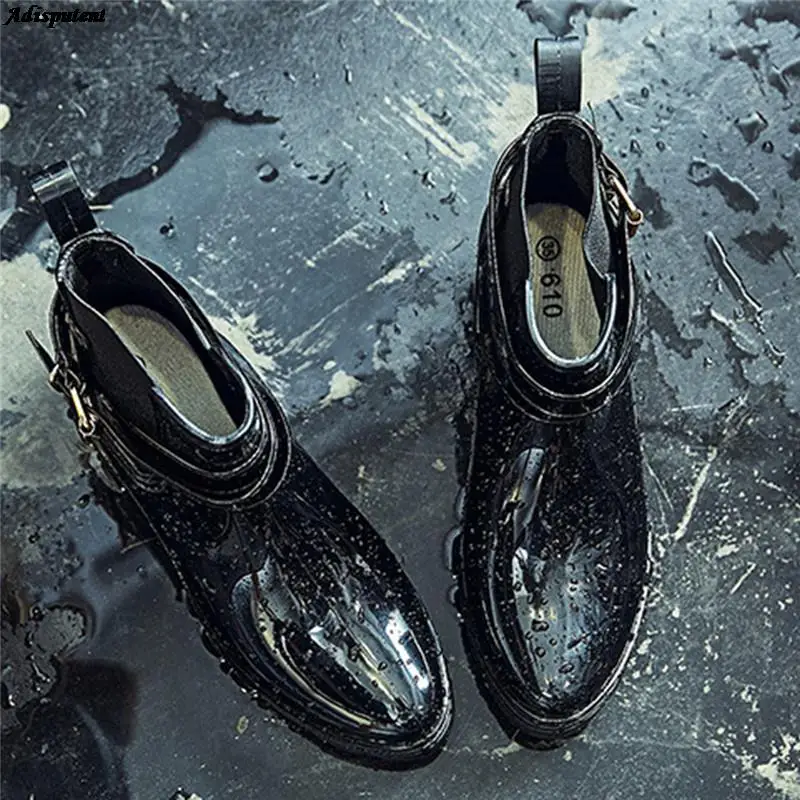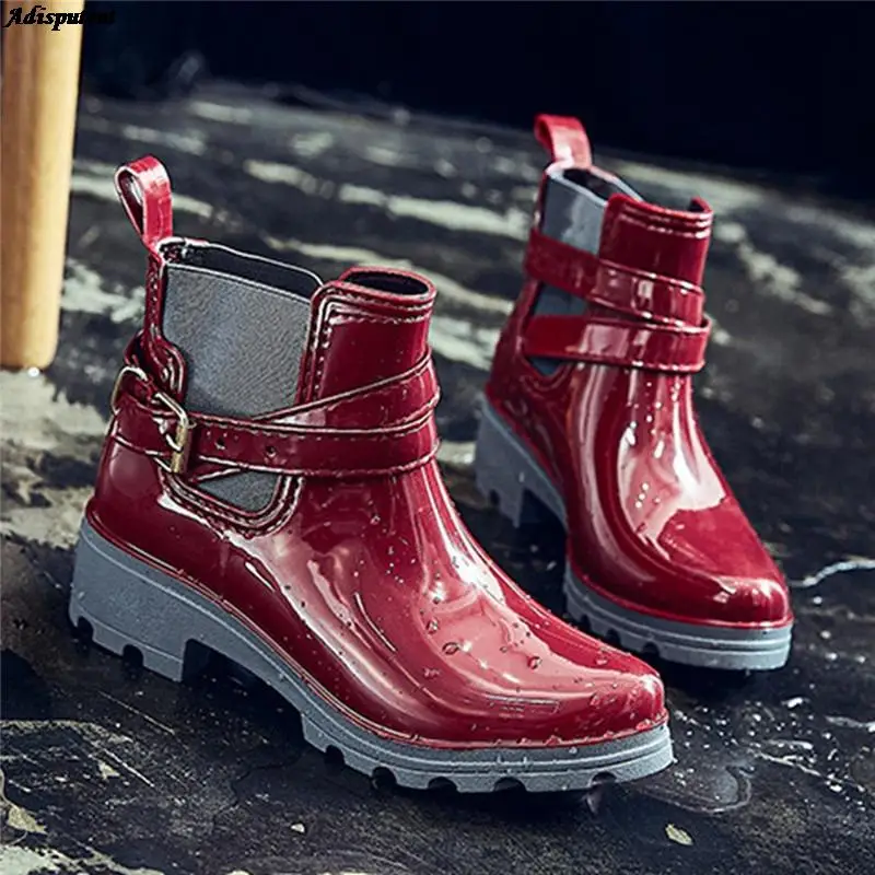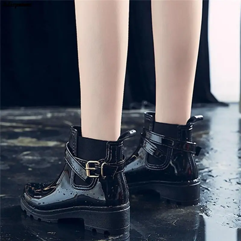 Водонепроницаемые ботильоны, женские резиновые ботинки из ПВХ, Нескользящие лакированные кожаные водоотталкивающие ботинки с U-образной резинкой, модные ботинки мартинсы с прострочкой