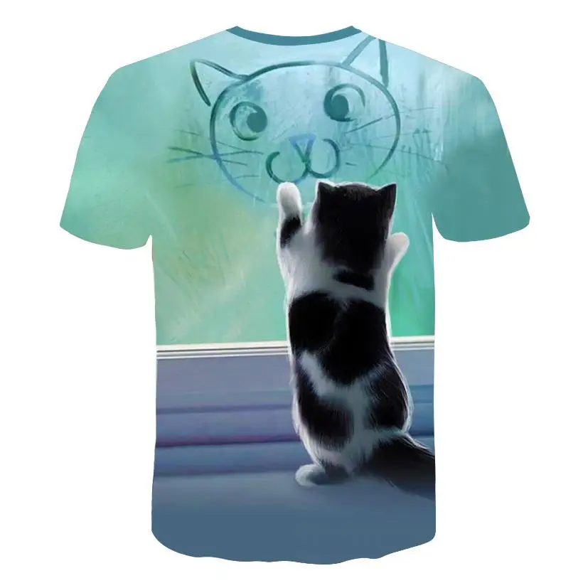 Футболка с 3D-принтом кошек, женская и мужская футболка с коротким ...