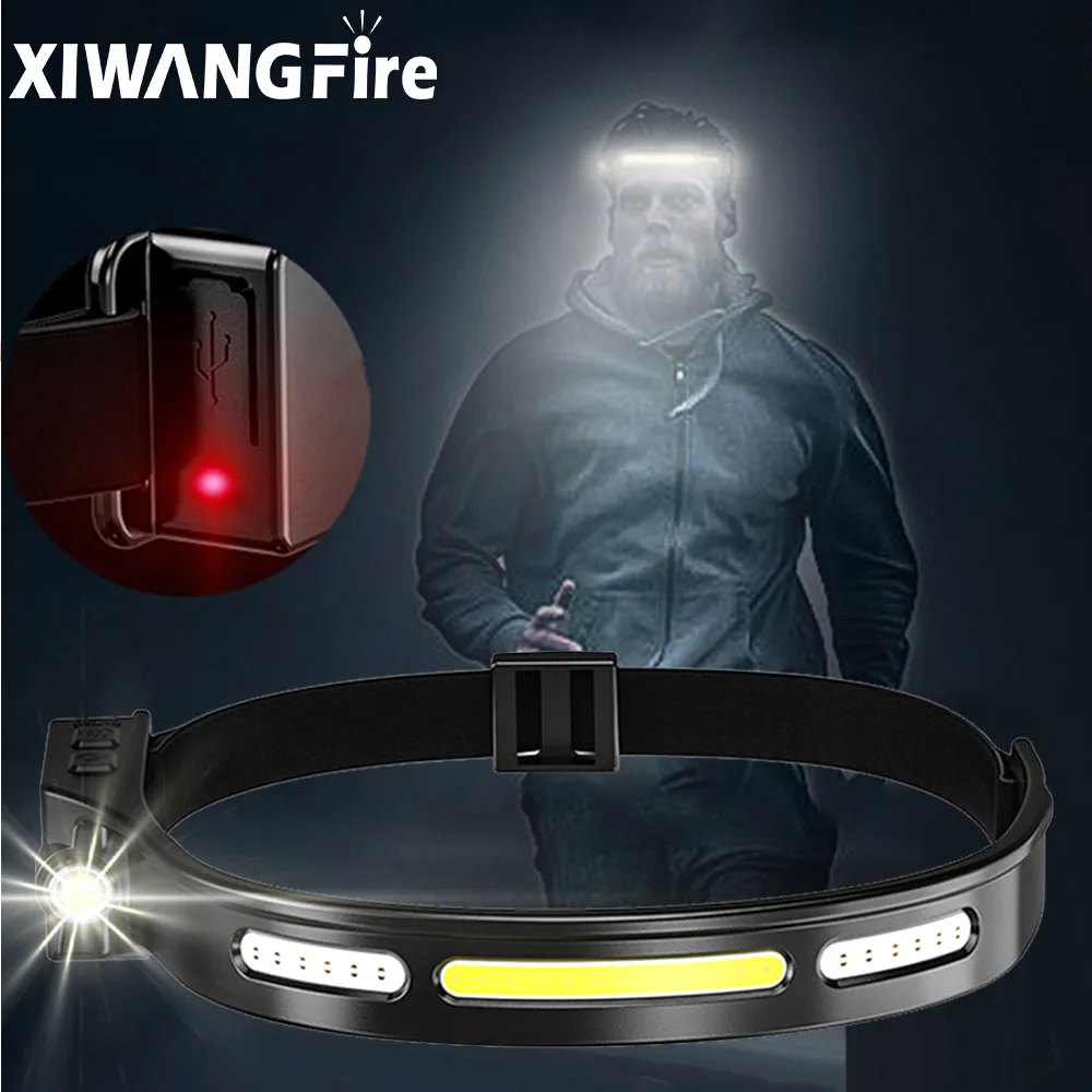 Открытый водонепроницаемый налобный фонарь Портативный Перезаряжаемый COB светодиодный налобный фонарь Индукционная Встроенная батарея Кемпинг красный светильник Предупреждение Рыбалка