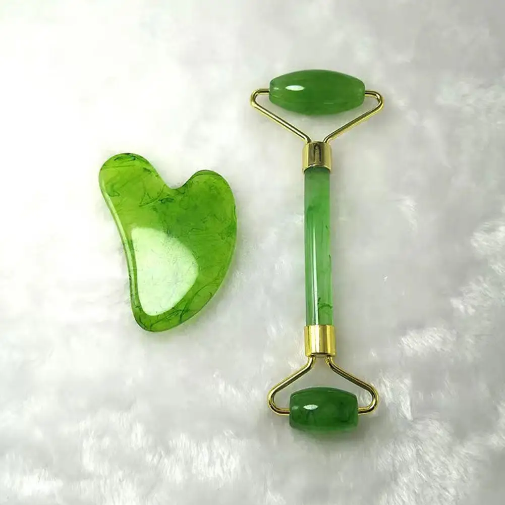 Камень Kamien Gua Sha для массажа лица, камень из розового кварца и нефрита, бритвенный камень для лица, 2 шт.компл.