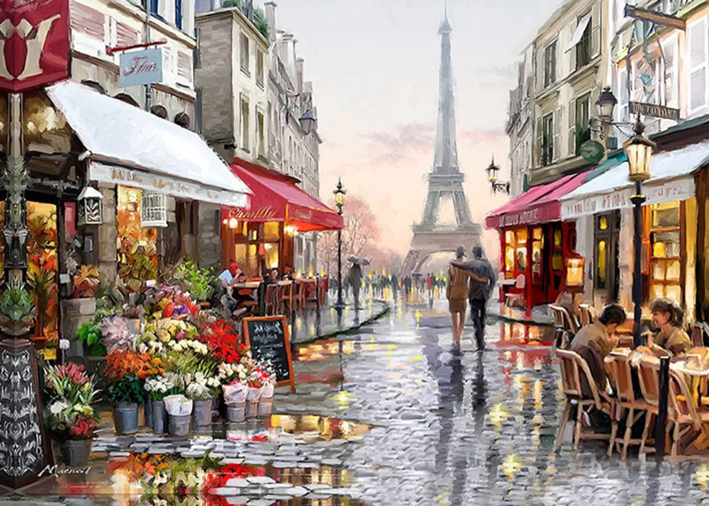 Алмазная 5D картина JIEME с изображением Парижа, цветов, улиц, полная Алмазная вышивка, пейзаж, стразы, мозаика, домашний декор, сделай сам, подарок